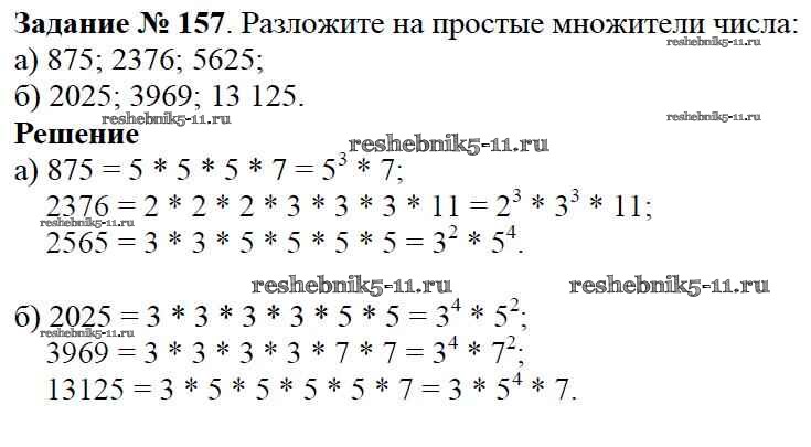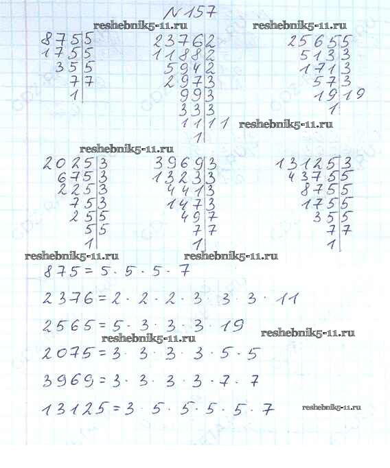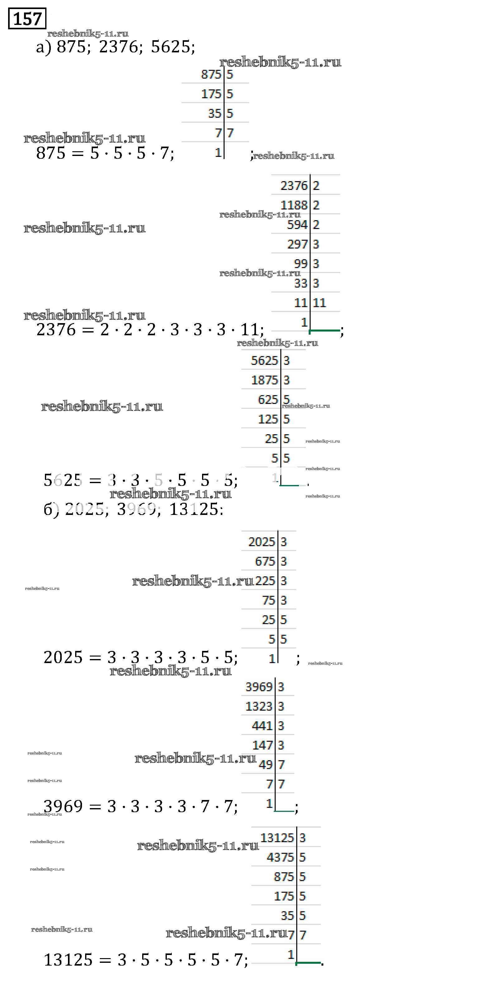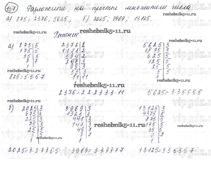 Готовая домашняя работа с ответами по Математике за 6 класс Виленкин, Жохов, Чесноков, Шварцбурд Учебник Мнемозина 2014 ФГОС - §1. Делимость чисел 157