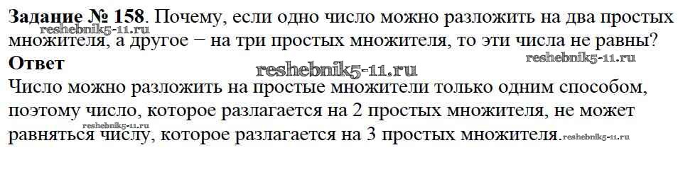 Готовая домашняя работа с ответами по Математике за 6 класс Виленкин, Жохов, Чесноков, Шварцбурд Учебник Мнемозина 2014 ФГОС - §1. Делимость чисел 158