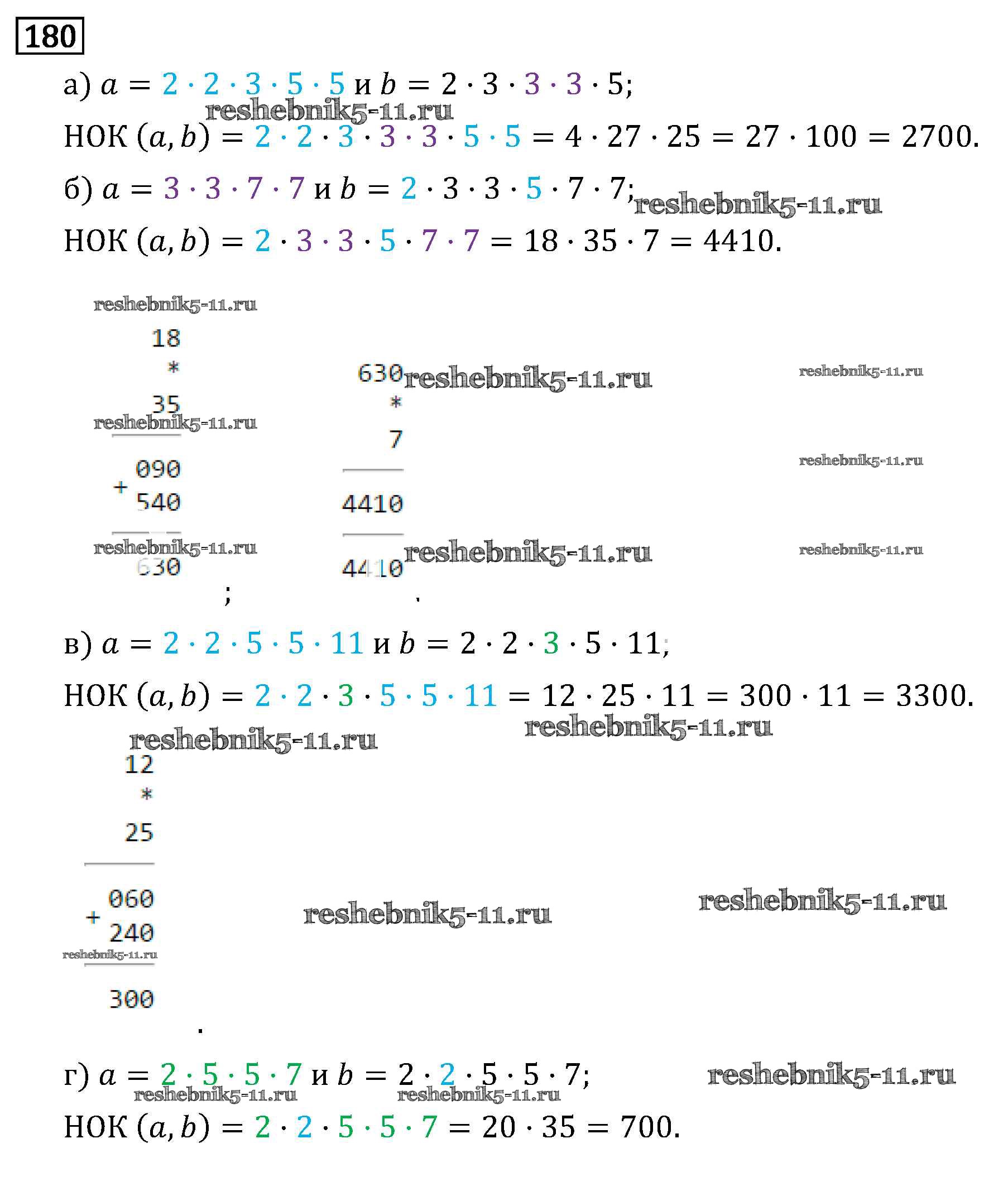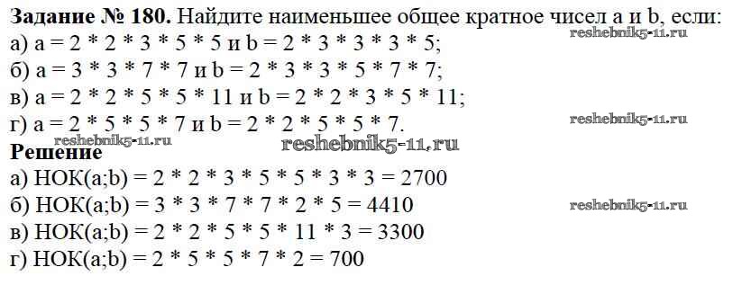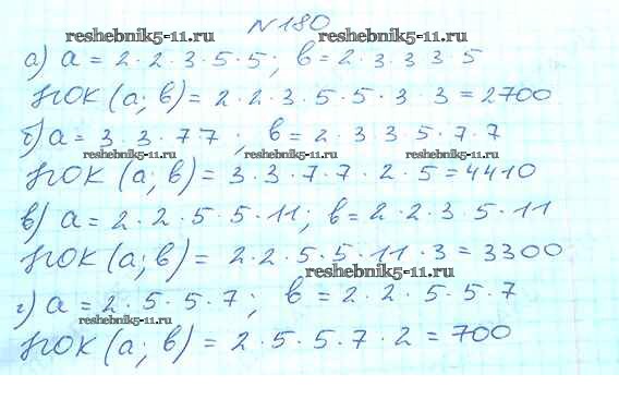 Готовая домашняя работа с ответами по Математике за 6 класс Виленкин, Жохов, Чесноков, Шварцбурд Учебник Мнемозина 2014 ФГОС - §1. Делимость чисел 180