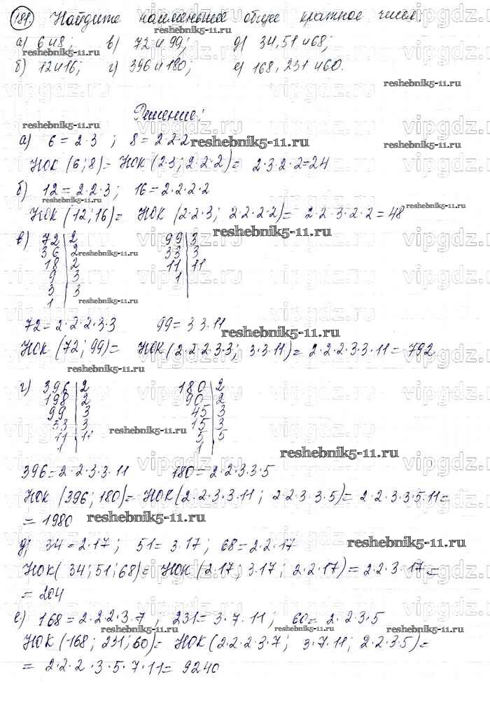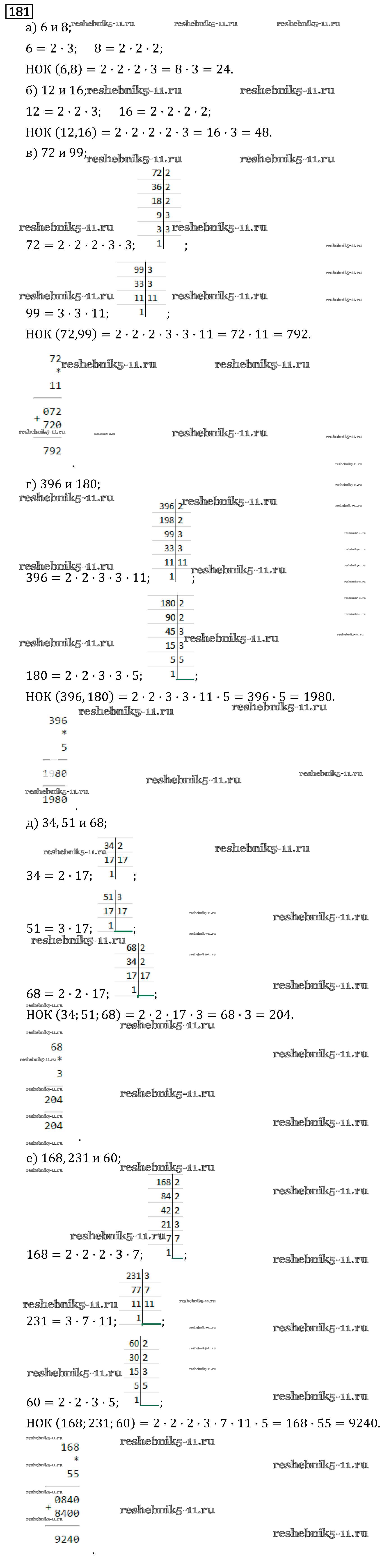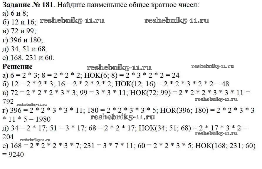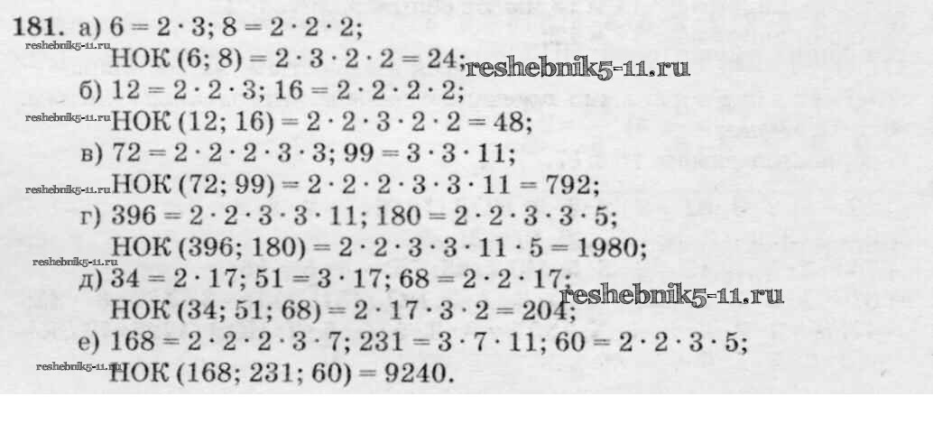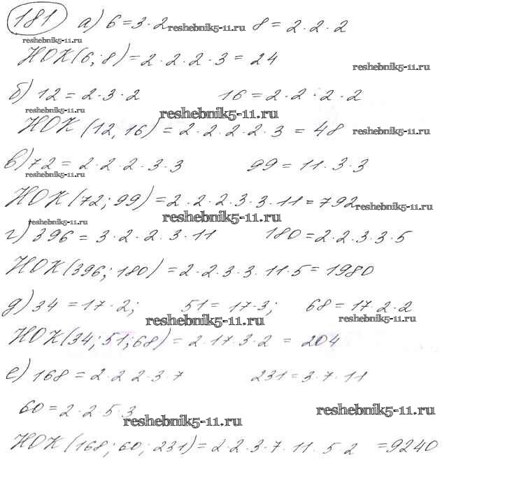 Готовая домашняя работа с ответами по Математике за 6 класс Виленкин, Жохов, Чесноков, Шварцбурд Учебник Мнемозина 2014 ФГОС - §1. Делимость чисел 181