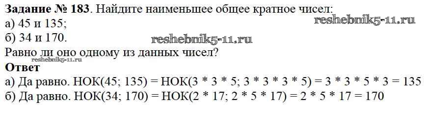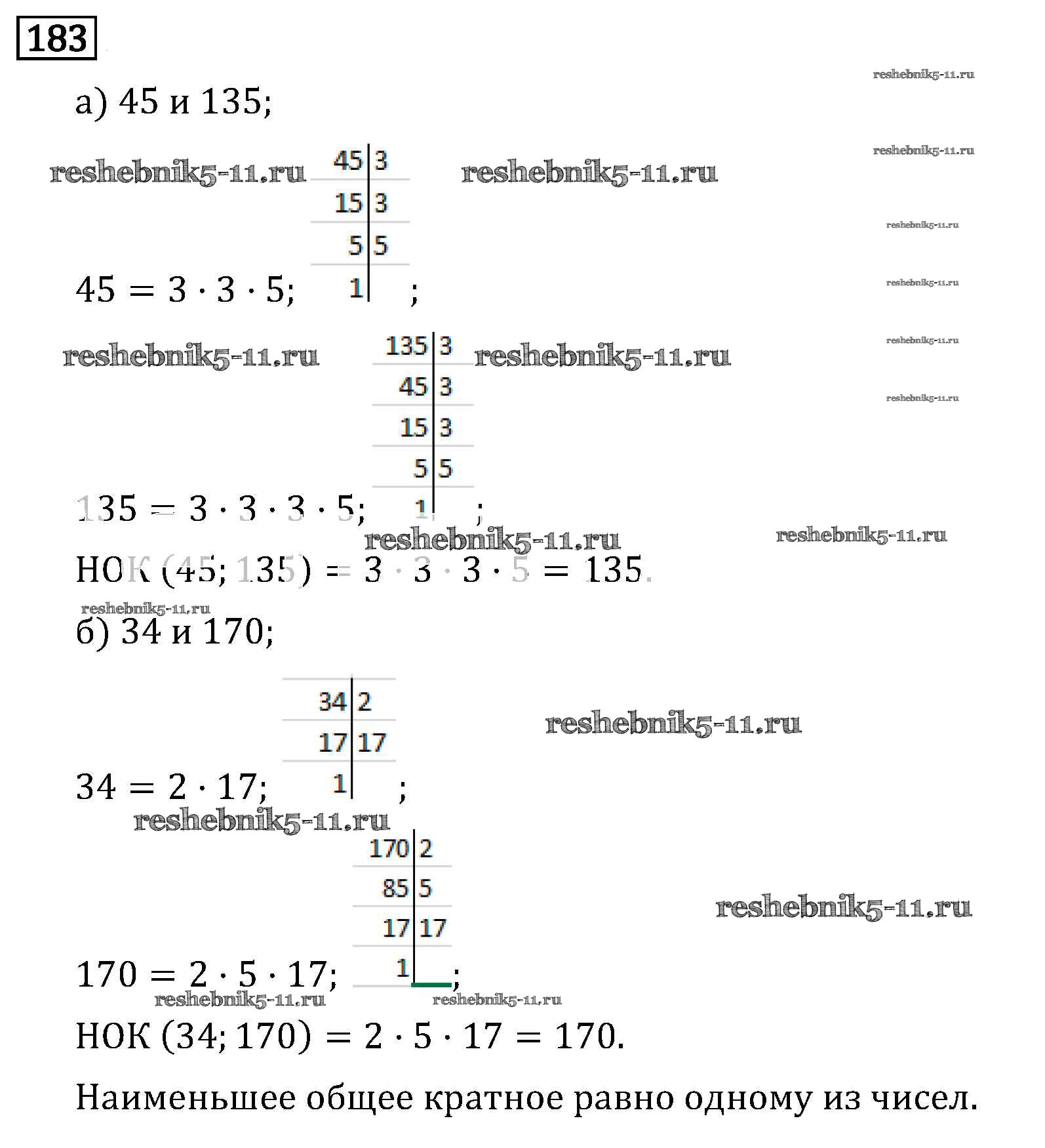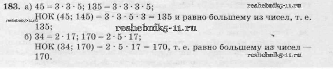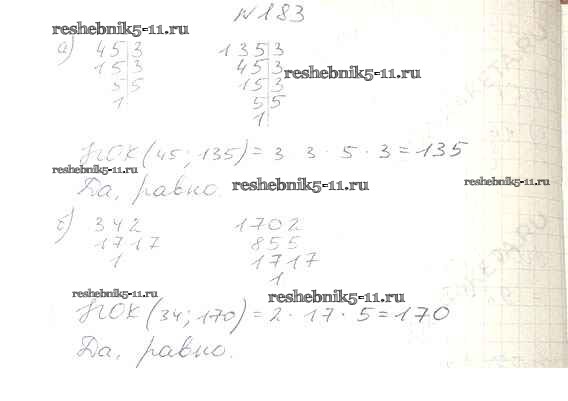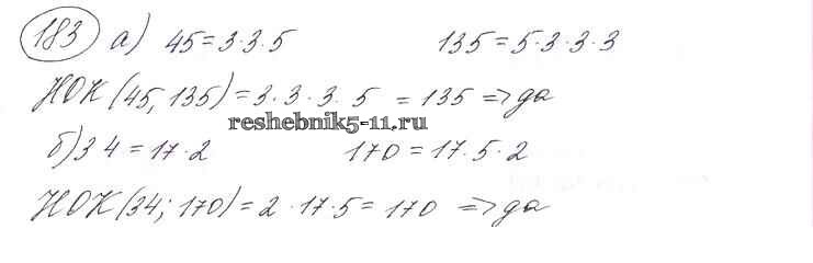 Готовая домашняя работа с ответами по Математике за 6 класс Виленкин, Жохов, Чесноков, Шварцбурд Учебник Мнемозина 2014 ФГОС - §1. Делимость чисел 183