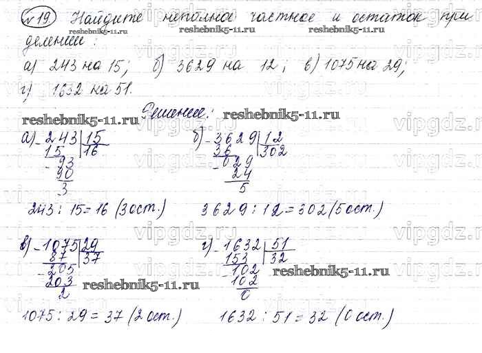 Готовая домашняя работа с ответами по Математике за 6 класс Виленкин, Жохов, Чесноков, Шварцбурд Учебник Мнемозина 2014 ФГОС - §1. Делимость чисел 19