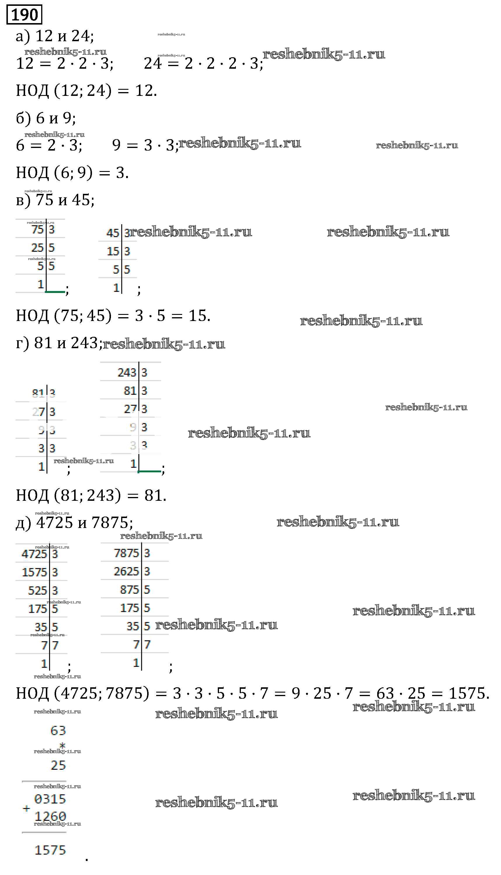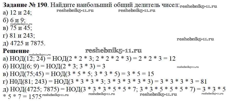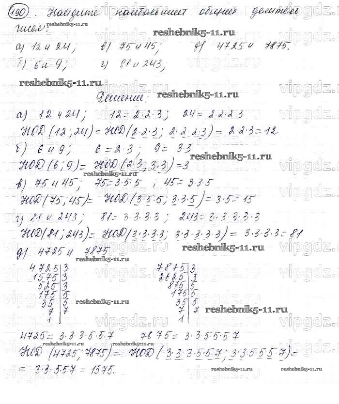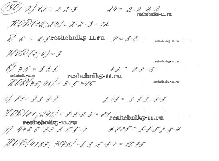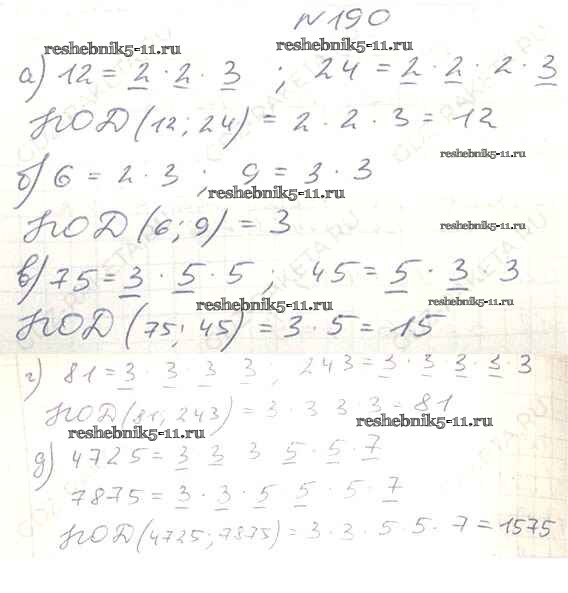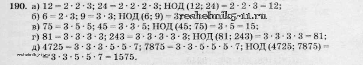 Готовая домашняя работа с ответами по Математике за 6 класс Виленкин, Жохов, Чесноков, Шварцбурд Учебник Мнемозина 2014 ФГОС - §1. Делимость чисел 190