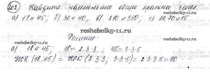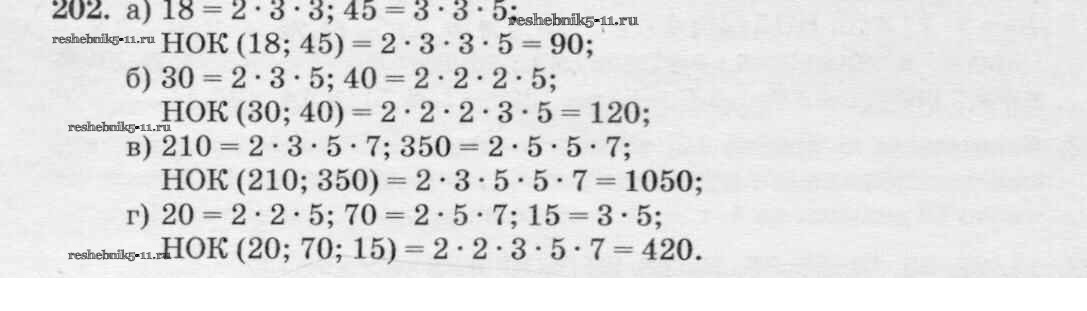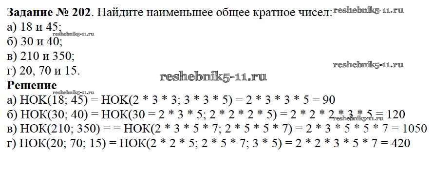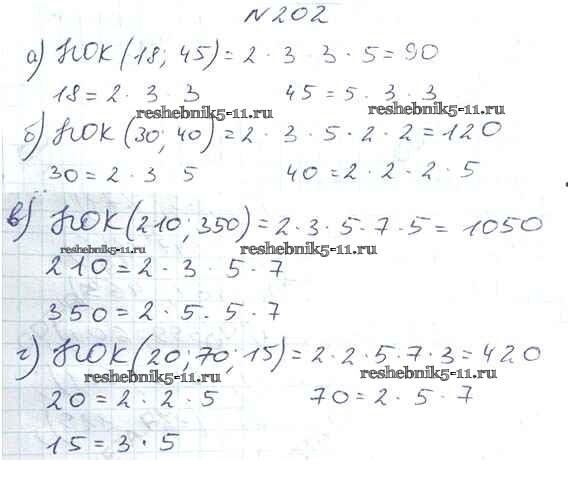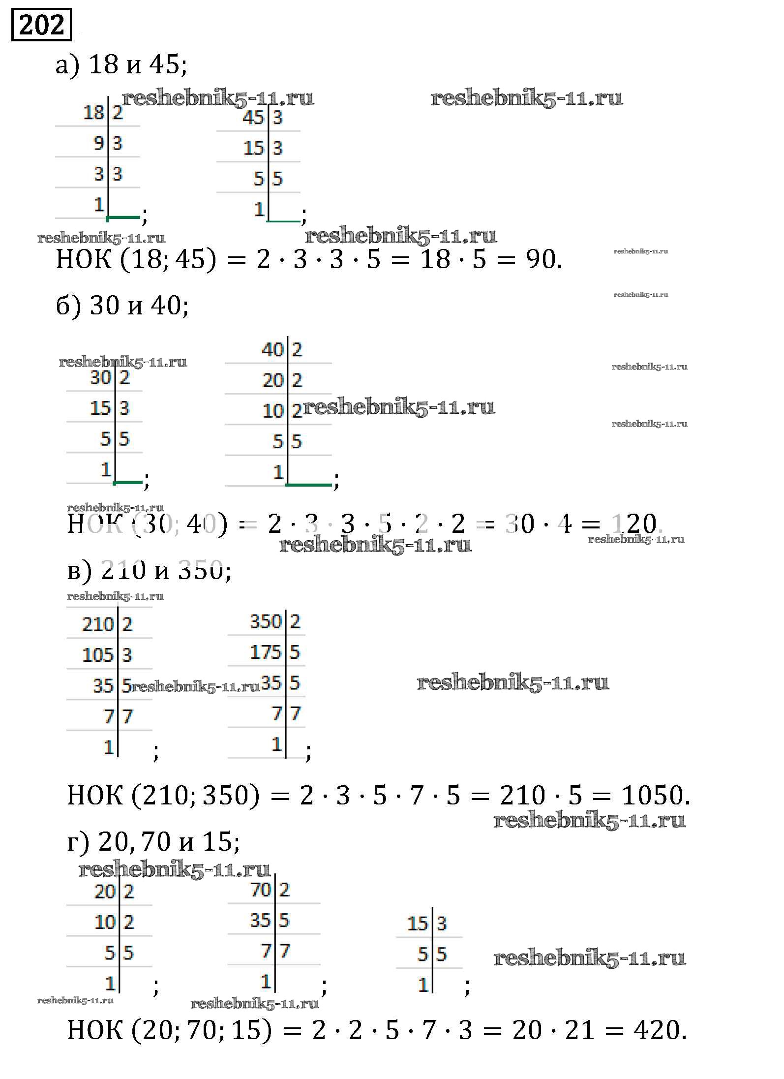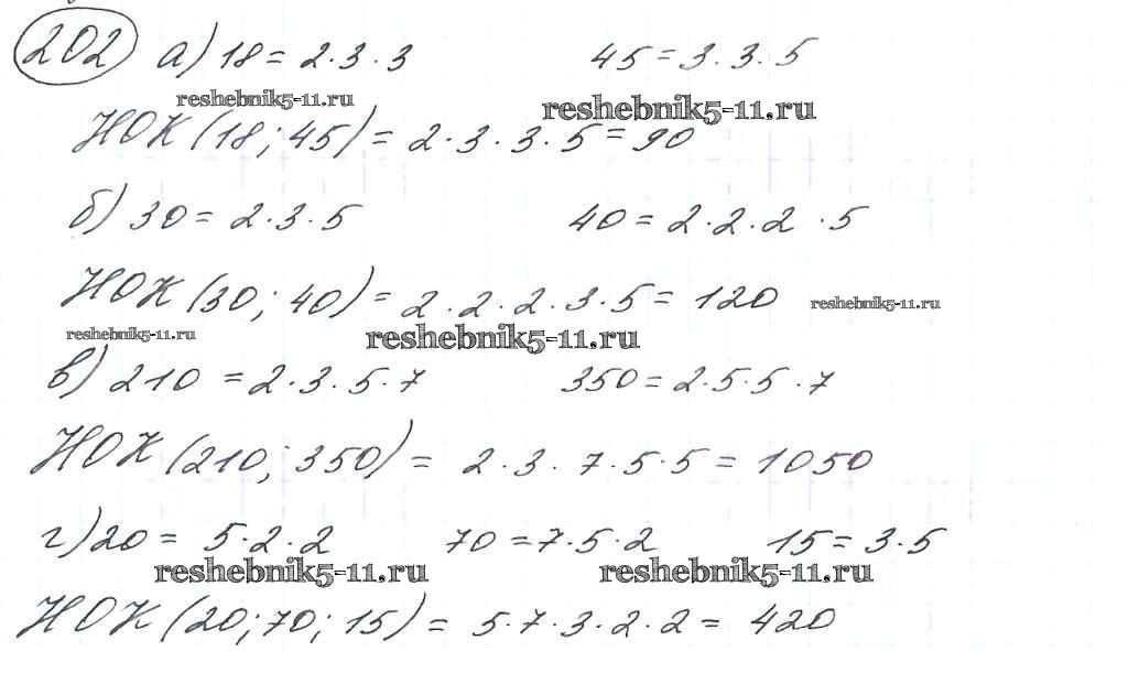Готовая домашняя работа с ответами по Математике за 6 класс Виленкин, Жохов, Чесноков, Шварцбурд Учебник Мнемозина 2014 ФГОС - §1. Делимость чисел 202