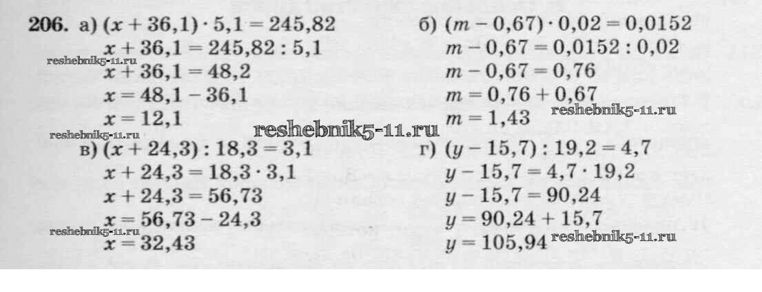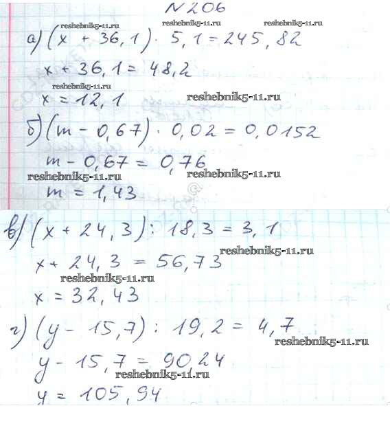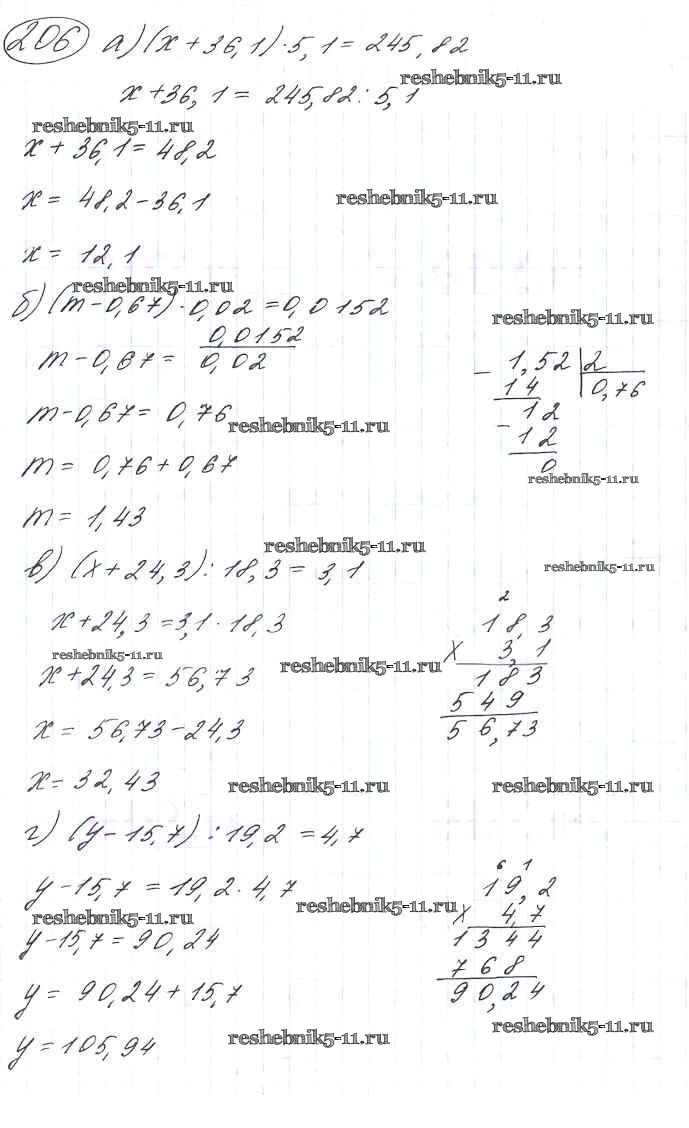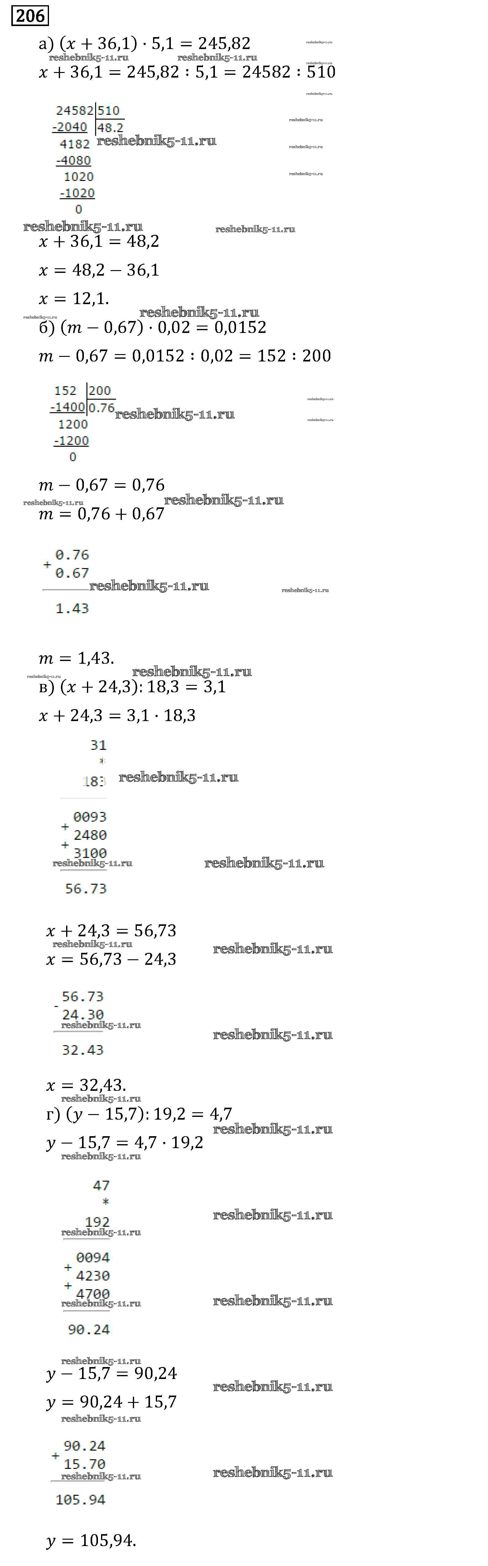 Готовая домашняя работа с ответами по Математике за 6 класс Виленкин, Жохов, Чесноков, Шварцбурд Учебник Мнемозина 2014 ФГОС - §1. Делимость чисел 206