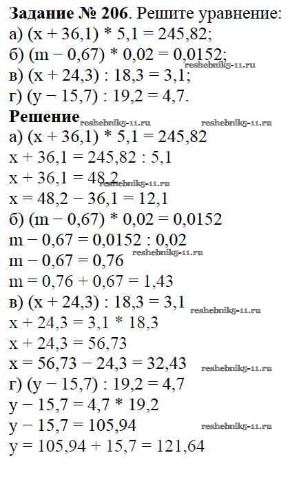 Математика за 6 класс Виленкин Учебник Мнемозина §1 206