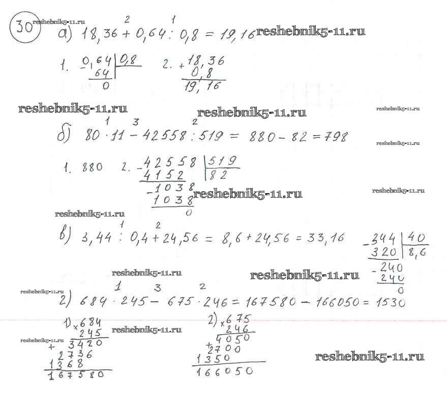 Готовая домашняя работа с ответами по Математике за 6 класс Виленкин, Жохов, Чесноков, Шварцбурд Учебник Мнемозина 2014 ФГОС - §1. Делимость чисел 30