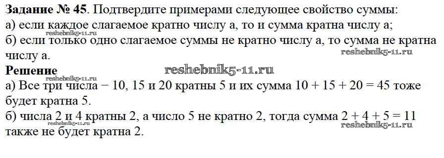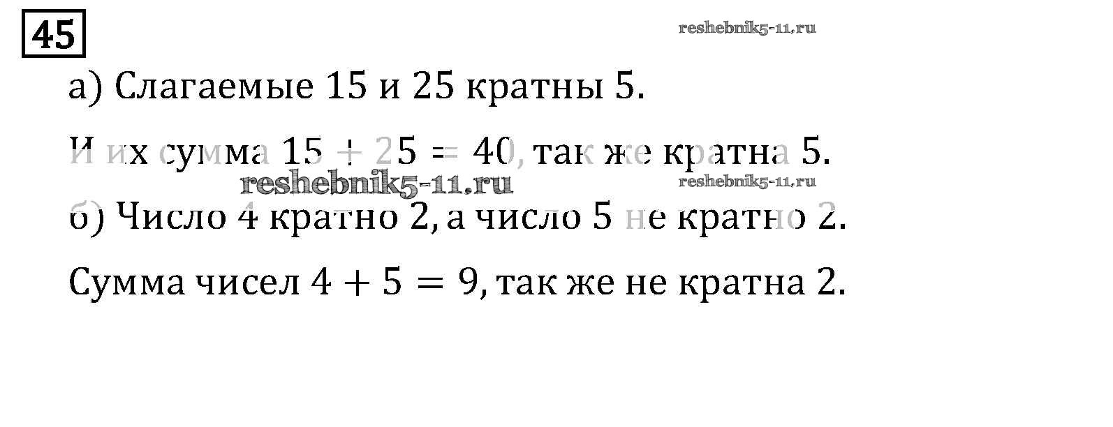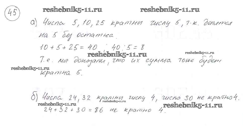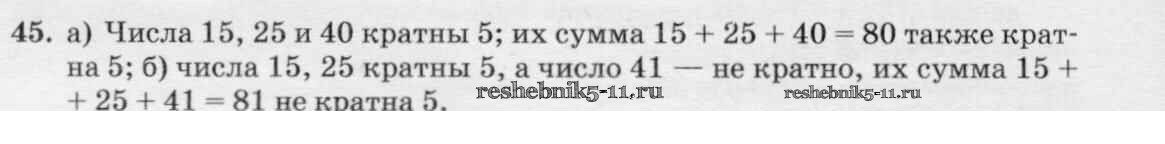 Готовая домашняя работа с ответами по Математике за 6 класс Виленкин, Жохов, Чесноков, Шварцбурд Учебник Мнемозина 2014 ФГОС - §1. Делимость чисел 45