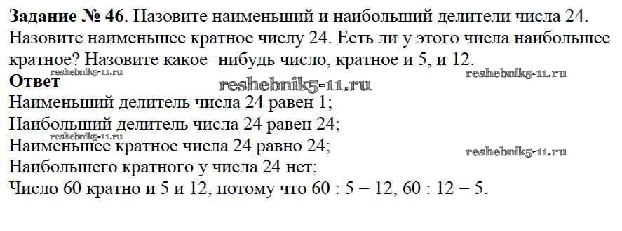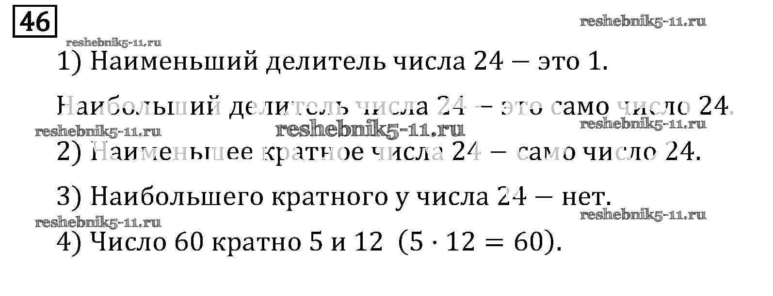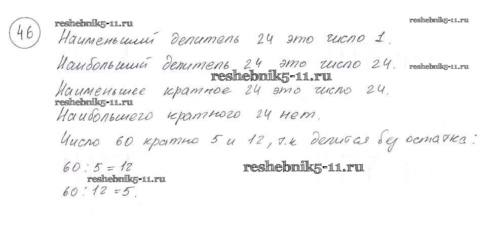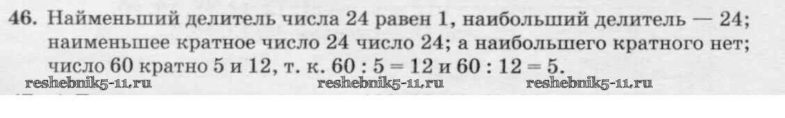 Готовая домашняя работа с ответами по Математике за 6 класс Виленкин, Жохов, Чесноков, Шварцбурд Учебник Мнемозина 2014 ФГОС - §1. Делимость чисел 46