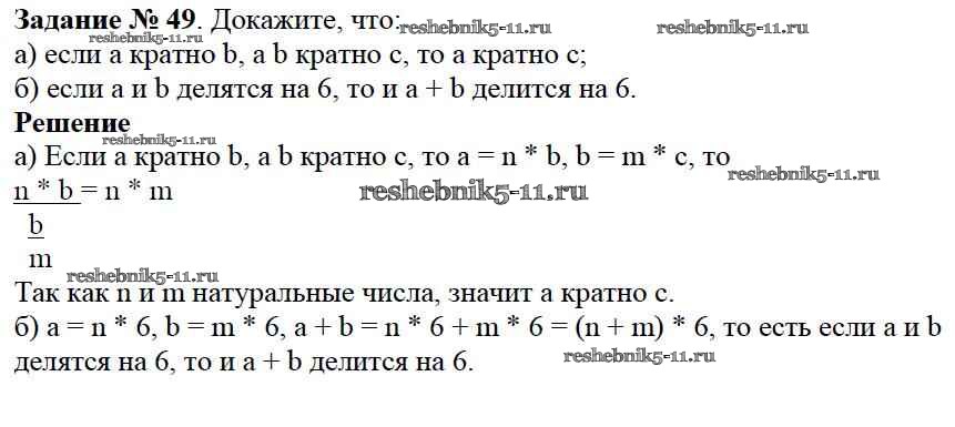 Готовая домашняя работа с ответами по Математике за 6 класс Виленкин, Жохов, Чесноков, Шварцбурд Учебник Мнемозина 2014 ФГОС - §1. Делимость чисел 49