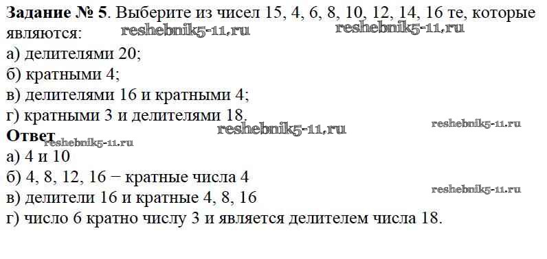 Готовая домашняя работа с ответами по Математике за 6 класс Виленкин, Жохов, Чесноков, Шварцбурд Учебник Мнемозина 2014 ФГОС - §1. Делимость чисел 5