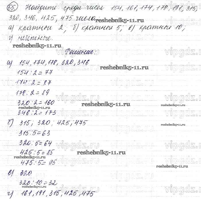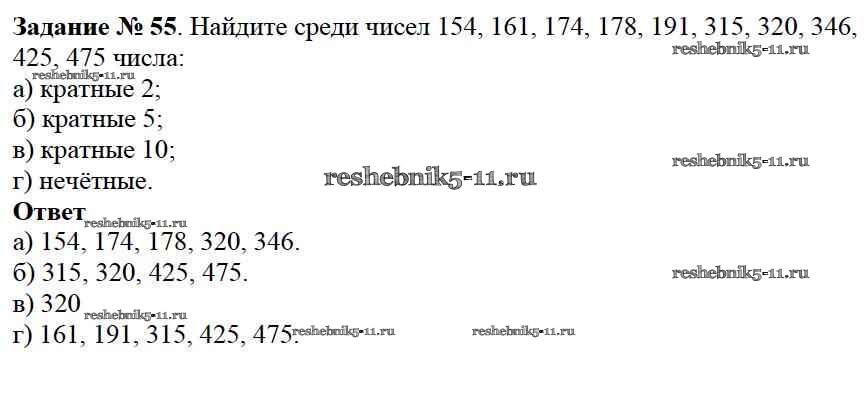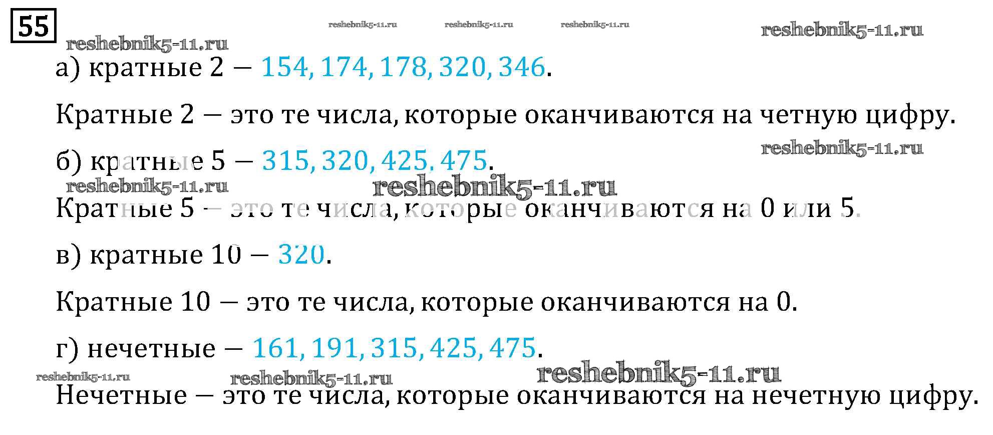 Готовая домашняя работа с ответами по Математике за 6 класс Виленкин, Жохов, Чесноков, Шварцбурд Учебник Мнемозина 2014 ФГОС - §1. Делимость чисел 55