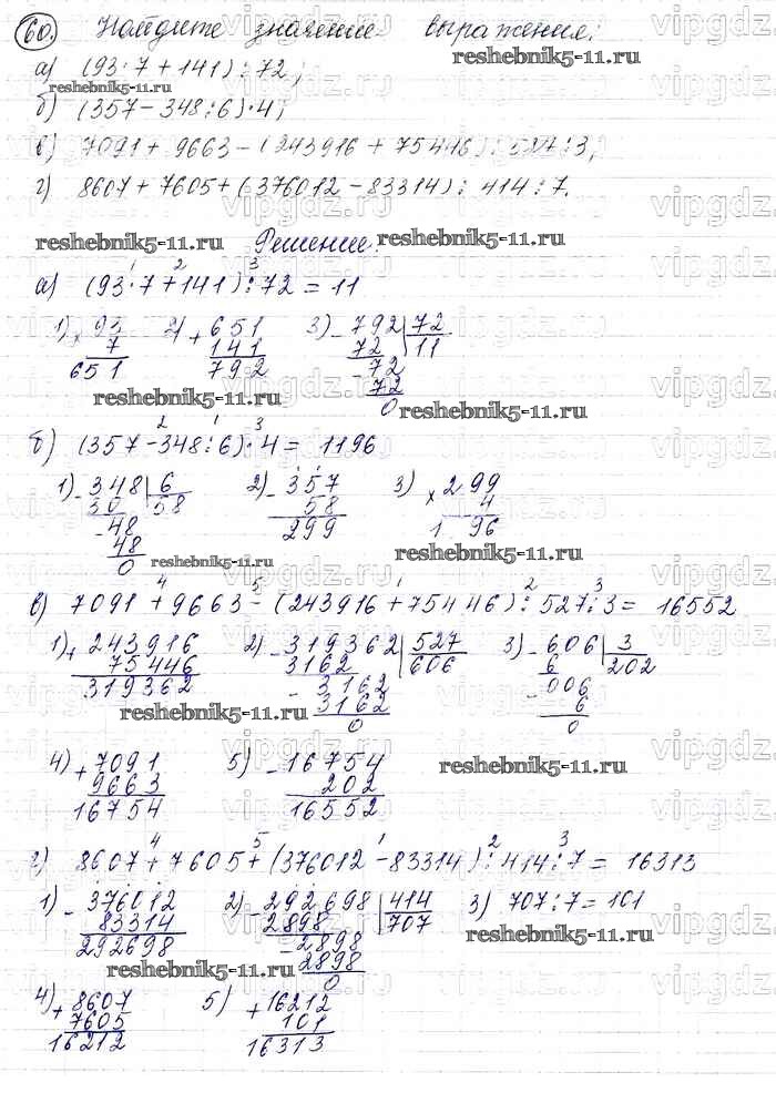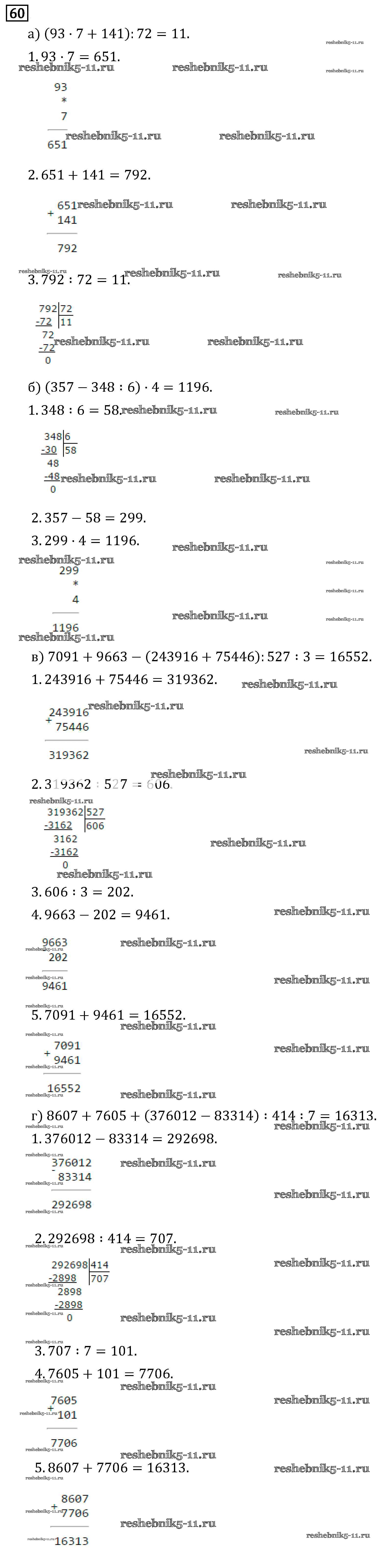 Готовая домашняя работа с ответами по Математике за 6 класс Виленкин, Жохов, Чесноков, Шварцбурд Учебник Мнемозина 2014 ФГОС - §1. Делимость чисел 60
