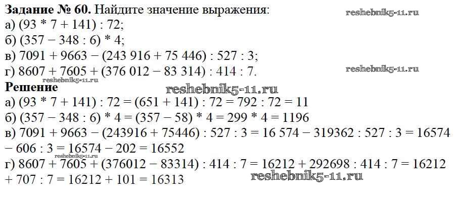 Математика за 6 класс Виленкин Учебник Мнемозина §1 60