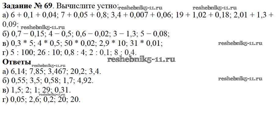 Математика за 6 класс Виленкин Учебник Мнемозина §1 69