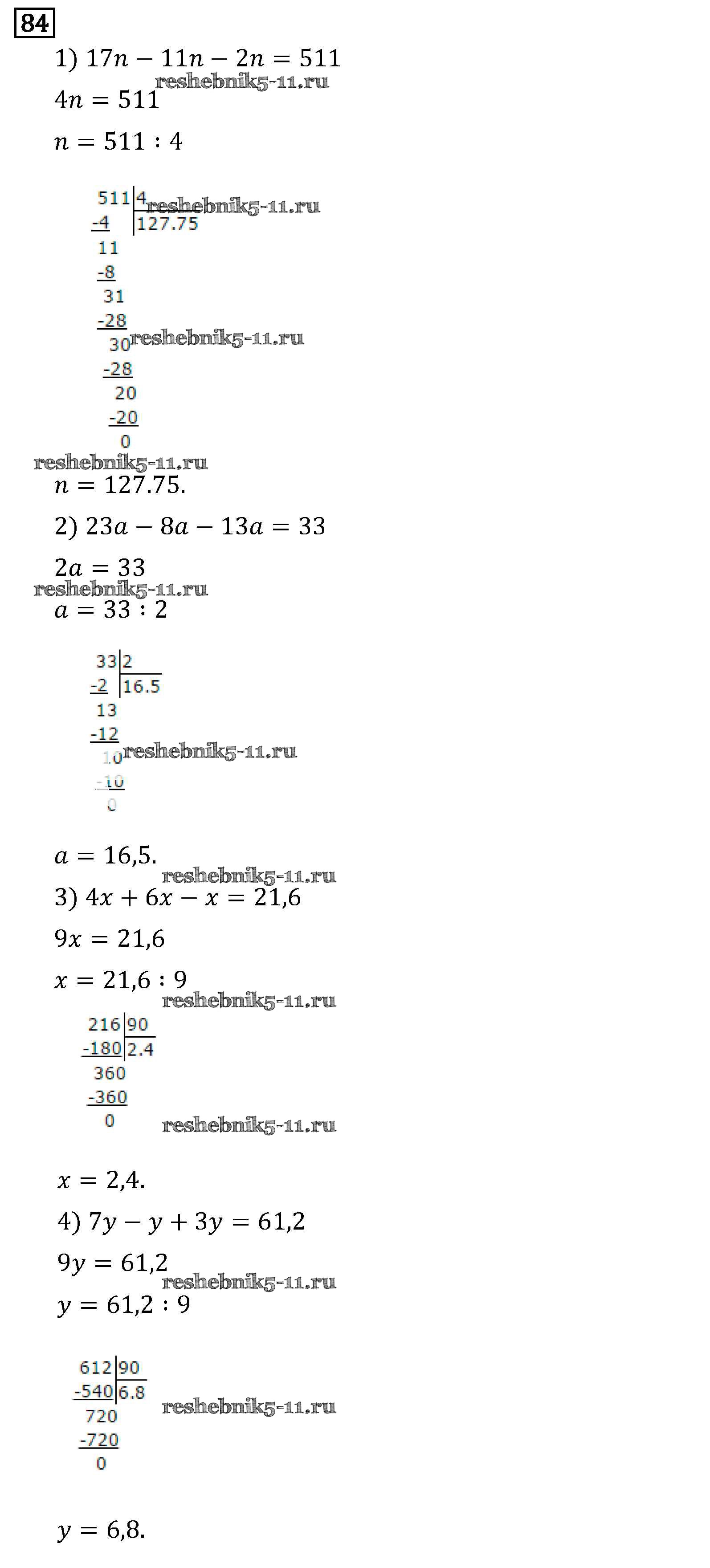 Готовая домашняя работа с ответами по Математике за 6 класс Виленкин, Жохов, Чесноков, Шварцбурд Учебник Мнемозина 2014 ФГОС - §1. Делимость чисел 84