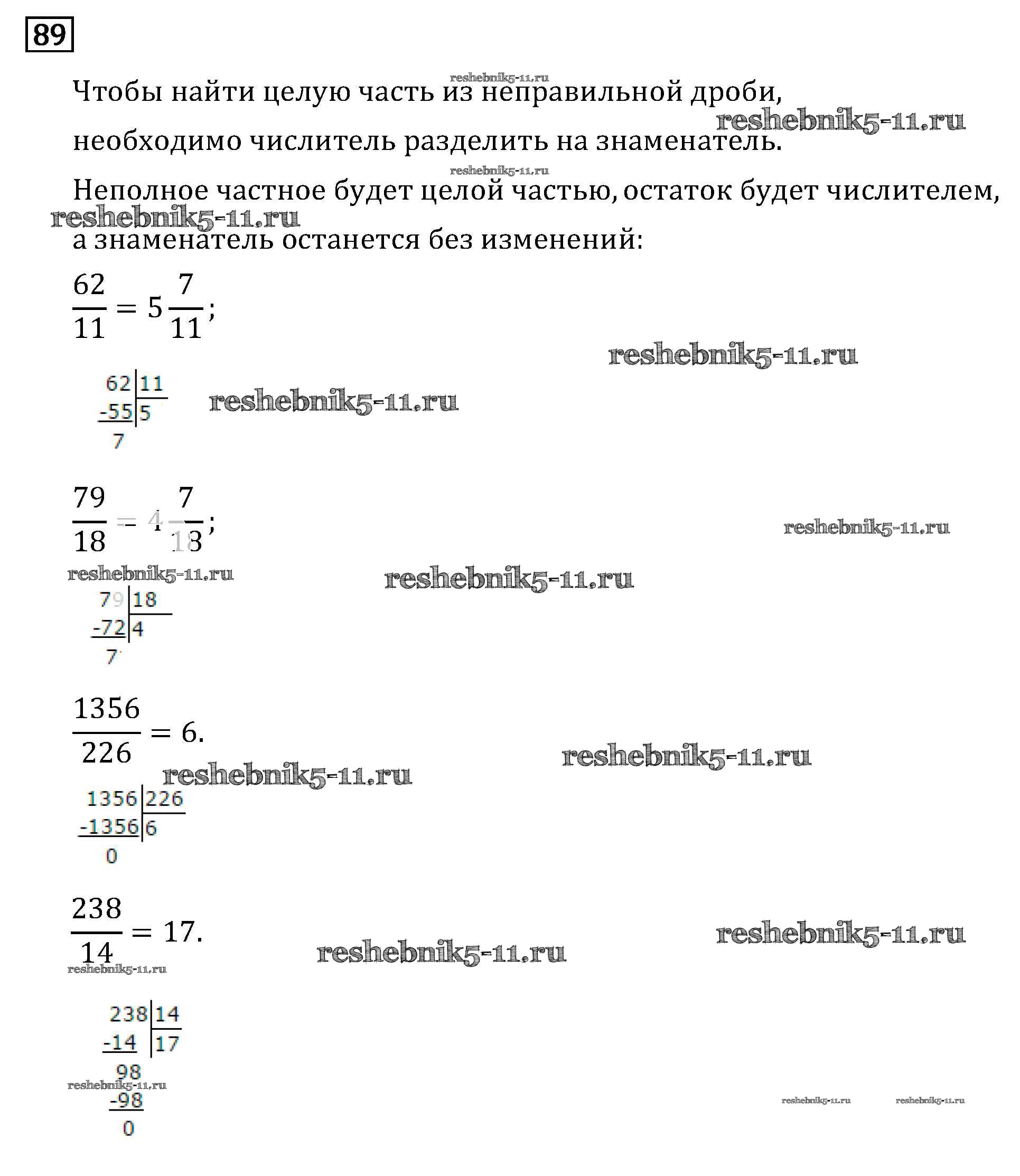 Готовая домашняя работа с ответами по Математике за 6 класс Виленкин, Жохов, Чесноков, Шварцбурд Учебник Мнемозина 2014 ФГОС - §1. Делимость чисел 89