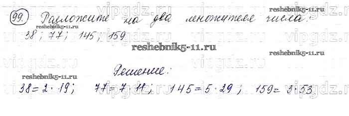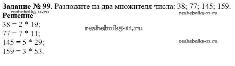 Готовая домашняя работа с ответами по Математике за 6 класс Виленкин, Жохов, Чесноков, Шварцбурд Учебник Мнемозина 2014 ФГОС - §1. Делимость чисел 99
