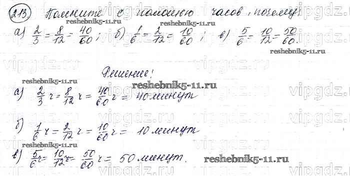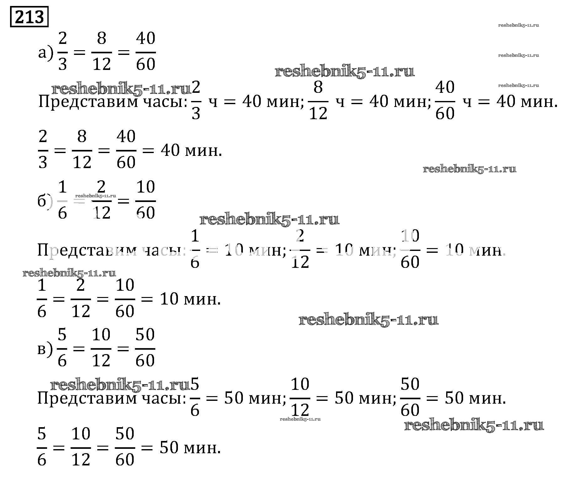 Готовая домашняя работа с ответами по Математике за 6 класс Виленкин, Жохов, Чесноков, Шварцбурд Учебник Мнемозина 2014 ФГОС - §2. Сложение и вычитание дробей с разными знаменателями 213