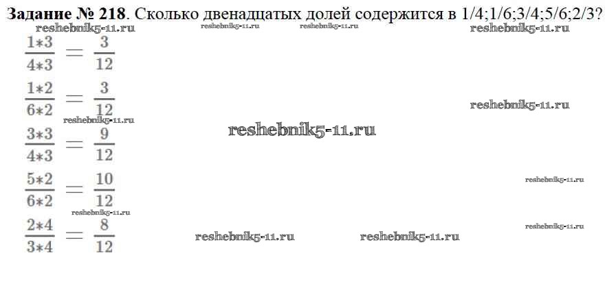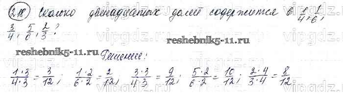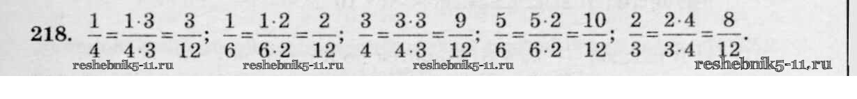 Готовая домашняя работа с ответами по Математике за 6 класс Виленкин, Жохов, Чесноков, Шварцбурд Учебник Мнемозина 2014 ФГОС - §2. Сложение и вычитание дробей с разными знаменателями 218