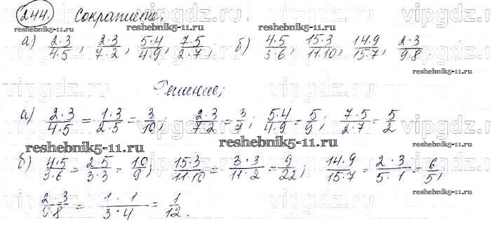 Готовая домашняя работа с ответами по Математике за 6 класс Виленкин, Жохов, Чесноков, Шварцбурд Учебник Мнемозина 2014 ФГОС - §2. Сложение и вычитание дробей с разными знаменателями 244