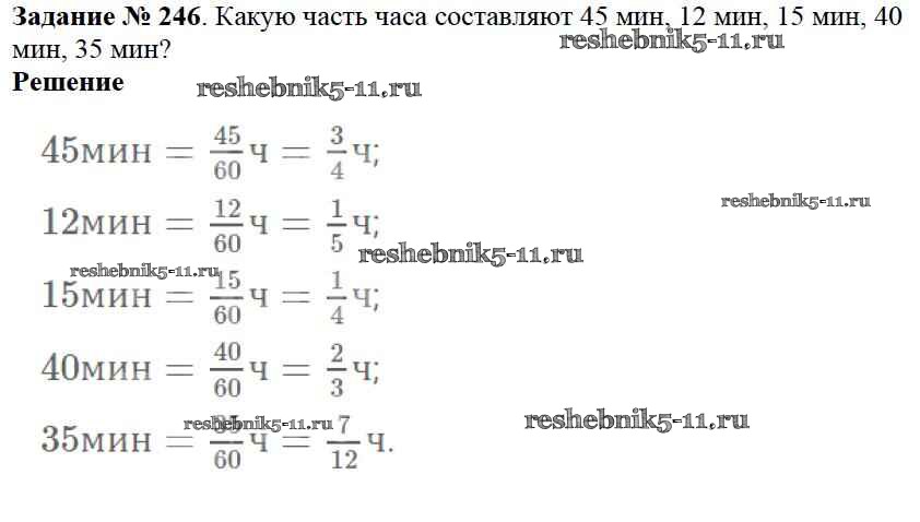 Готовая домашняя работа с ответами по Математике за 6 класс Виленкин, Жохов, Чесноков, Шварцбурд Учебник Мнемозина 2014 ФГОС - §2. Сложение и вычитание дробей с разными знаменателями 246