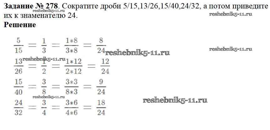 Готовая домашняя работа с ответами по Математике за 6 класс Виленкин, Жохов, Чесноков, Шварцбурд Учебник Мнемозина 2014 ФГОС - §2. Сложение и вычитание дробей с разными знаменателями 278