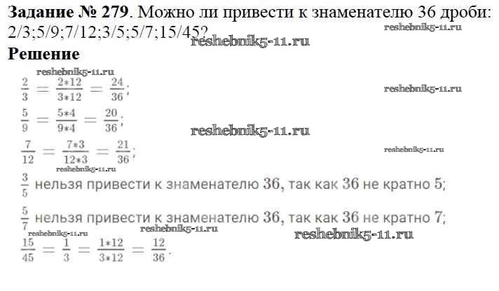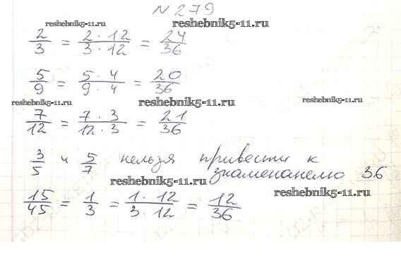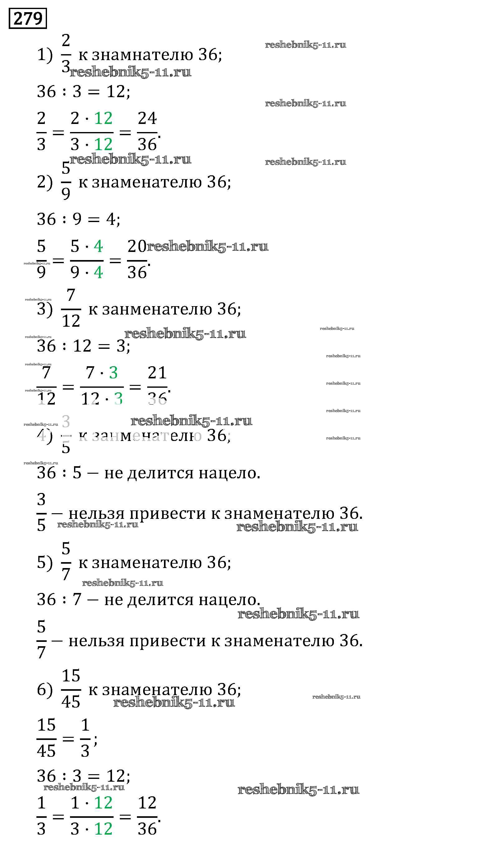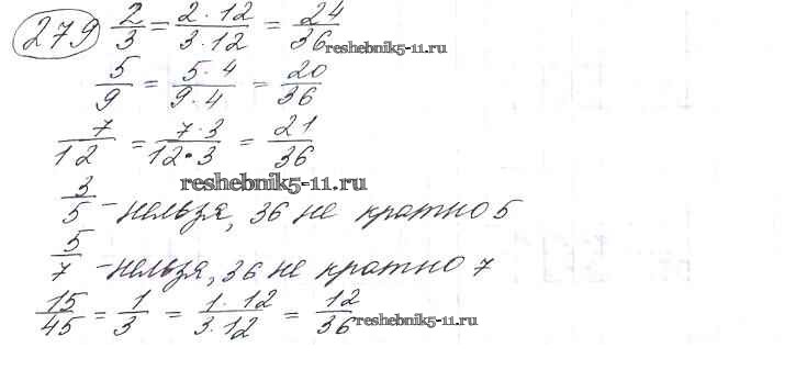 Готовая домашняя работа с ответами по Математике за 6 класс Виленкин, Жохов, Чесноков, Шварцбурд Учебник Мнемозина 2014 ФГОС - §2. Сложение и вычитание дробей с разными знаменателями 279