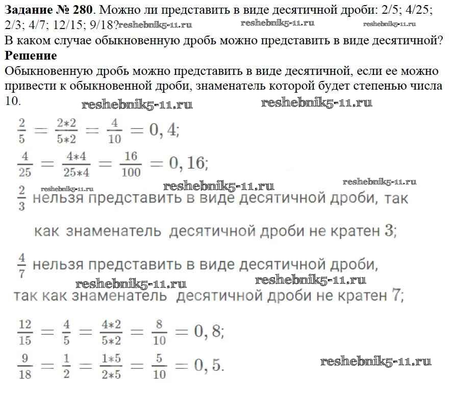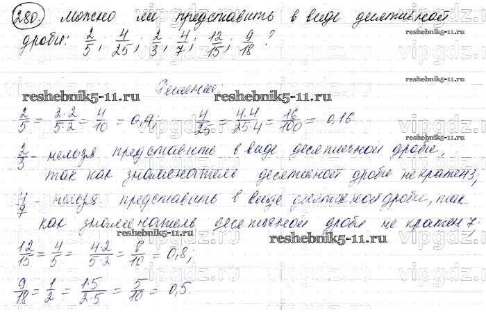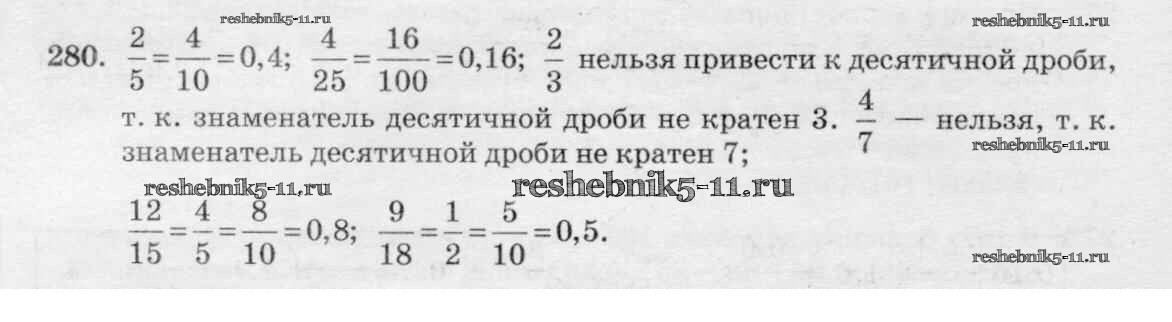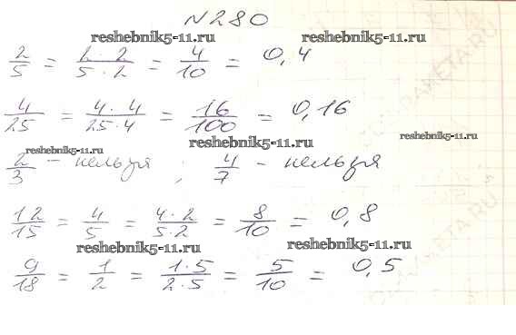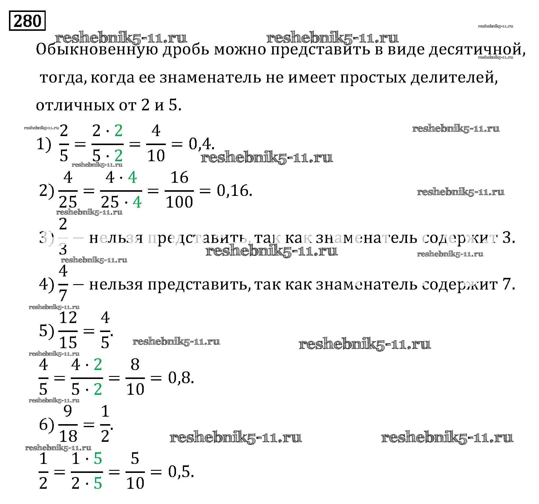 Готовая домашняя работа с ответами по Математике за 6 класс Виленкин, Жохов, Чесноков, Шварцбурд Учебник Мнемозина 2014 ФГОС - §2. Сложение и вычитание дробей с разными знаменателями 280