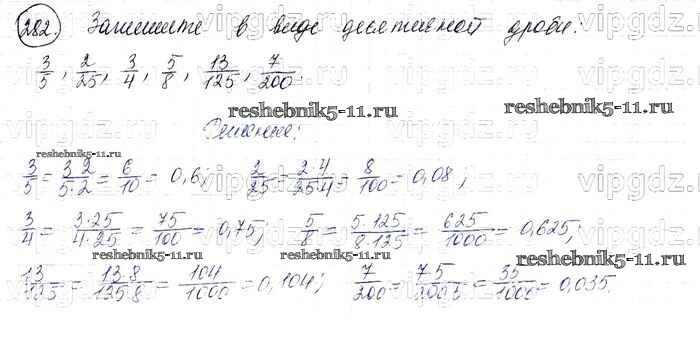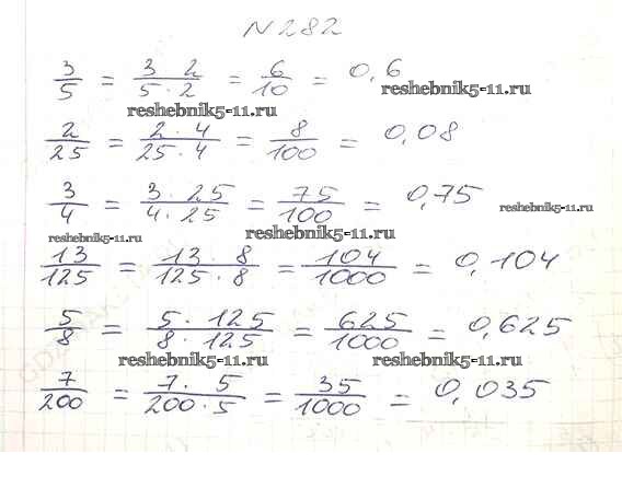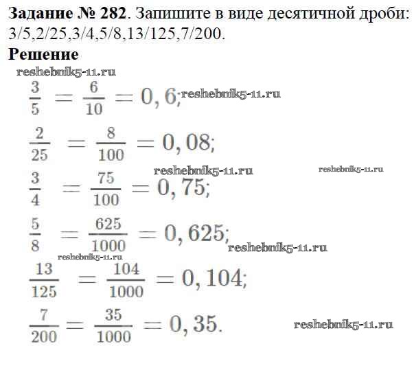 Готовая домашняя работа с ответами по Математике за 6 класс Виленкин, Жохов, Чесноков, Шварцбурд Учебник Мнемозина 2014 ФГОС - §2. Сложение и вычитание дробей с разными знаменателями 282