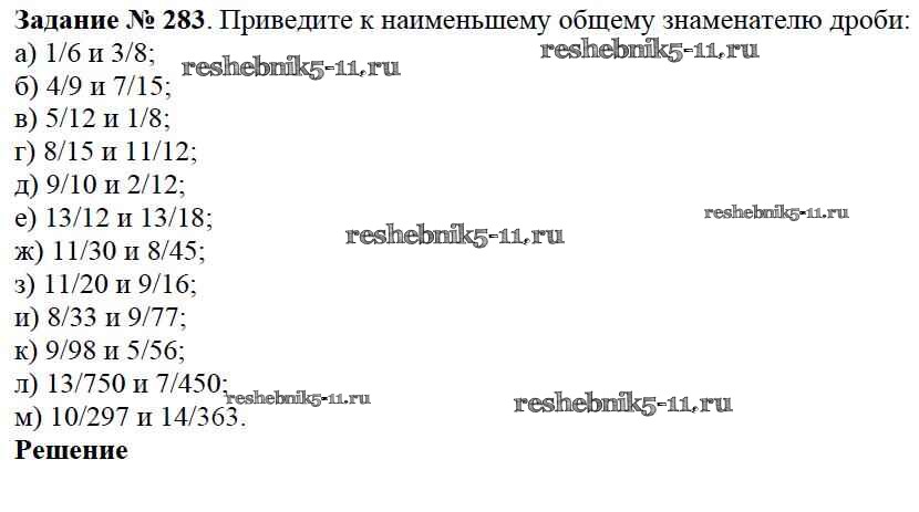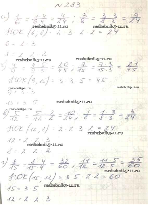 Готовая домашняя работа с ответами по Математике за 6 класс Виленкин, Жохов, Чесноков, Шварцбурд Учебник Мнемозина 2014 ФГОС - §2. Сложение и вычитание дробей с разными знаменателями 283