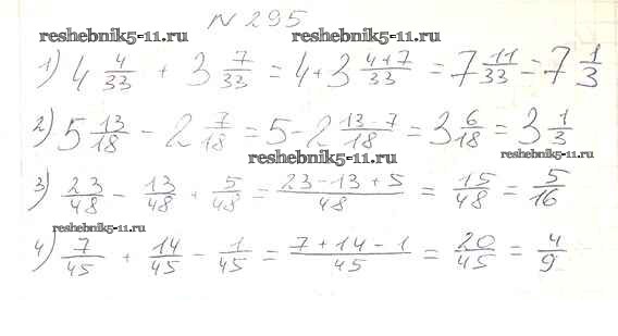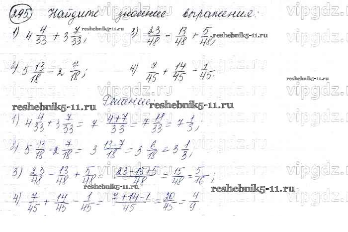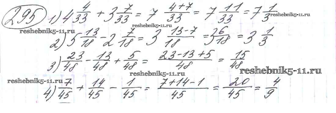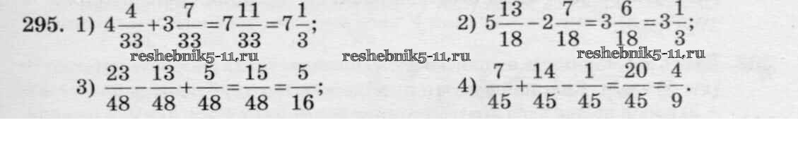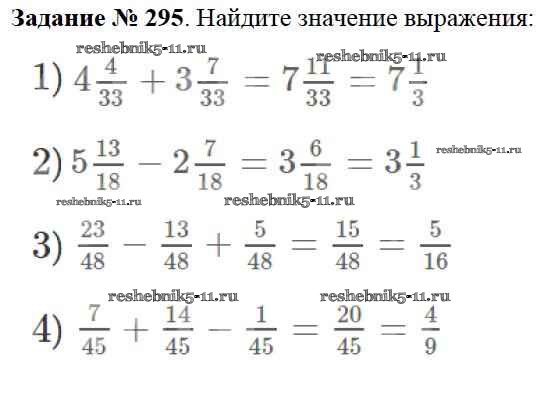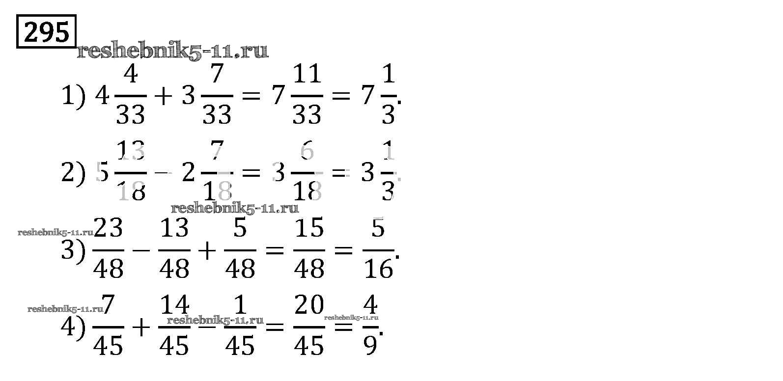 Готовая домашняя работа с ответами по Математике за 6 класс Виленкин, Жохов, Чесноков, Шварцбурд Учебник Мнемозина 2014 ФГОС - §2. Сложение и вычитание дробей с разными знаменателями 295