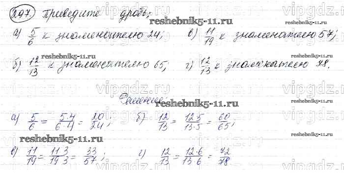 Готовая домашняя работа с ответами по Математике за 6 класс Виленкин, Жохов, Чесноков, Шварцбурд Учебник Мнемозина 2014 ФГОС - §2. Сложение и вычитание дробей с разными знаменателями 297