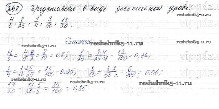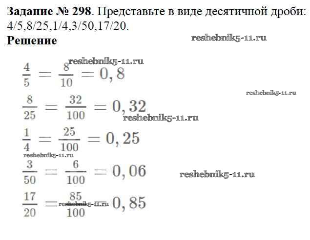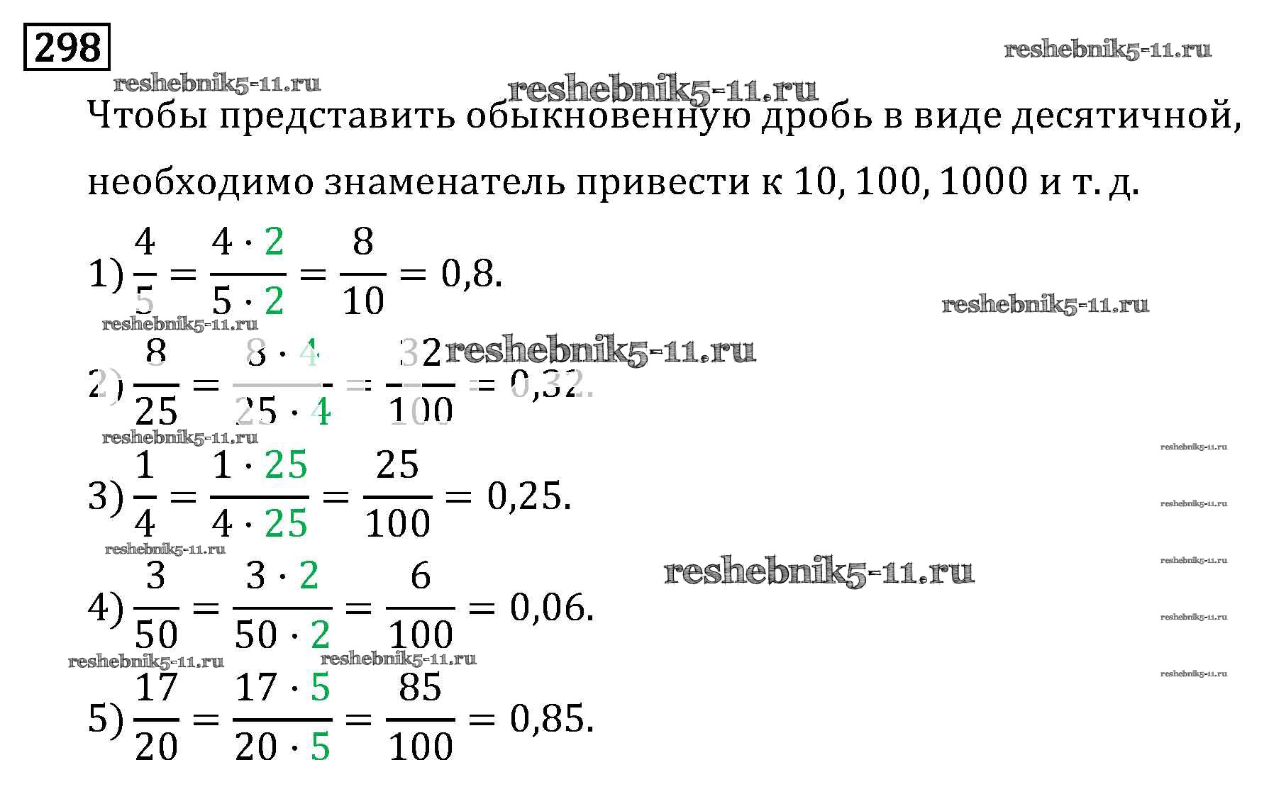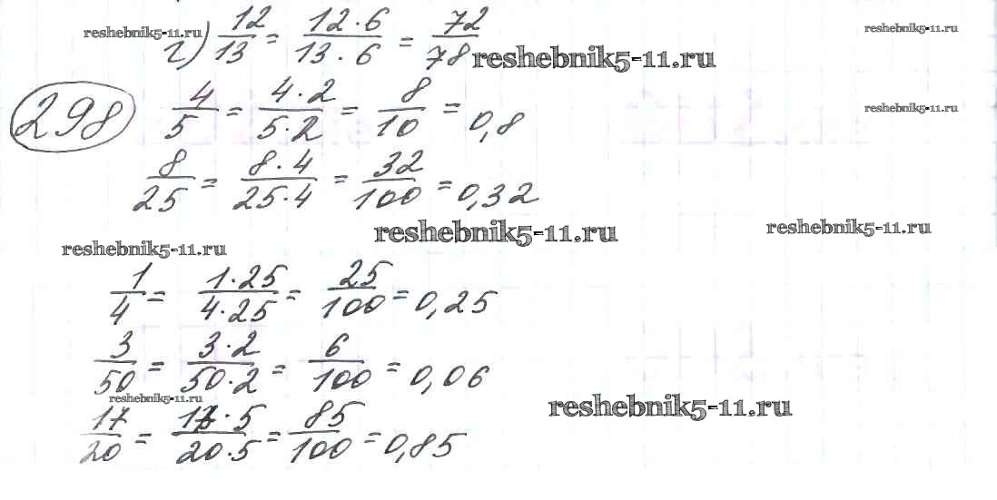 Готовая домашняя работа с ответами по Математике за 6 класс Виленкин, Жохов, Чесноков, Шварцбурд Учебник Мнемозина 2014 ФГОС - §2. Сложение и вычитание дробей с разными знаменателями 298