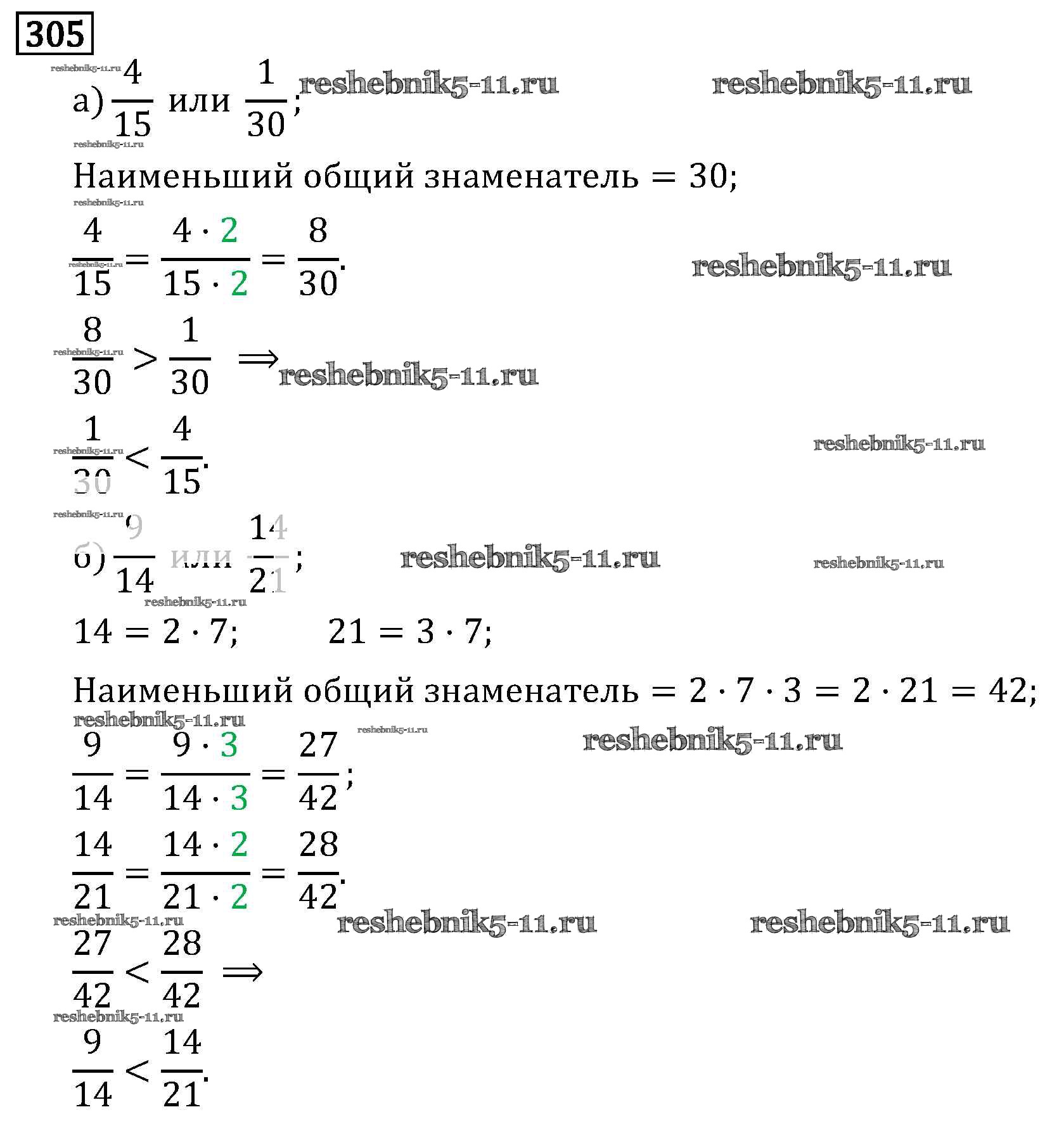 Готовая домашняя работа с ответами по Математике за 6 класс Виленкин, Жохов, Чесноков, Шварцбурд Учебник Мнемозина 2014 ФГОС - §2. Сложение и вычитание дробей с разными знаменателями 305