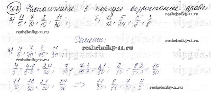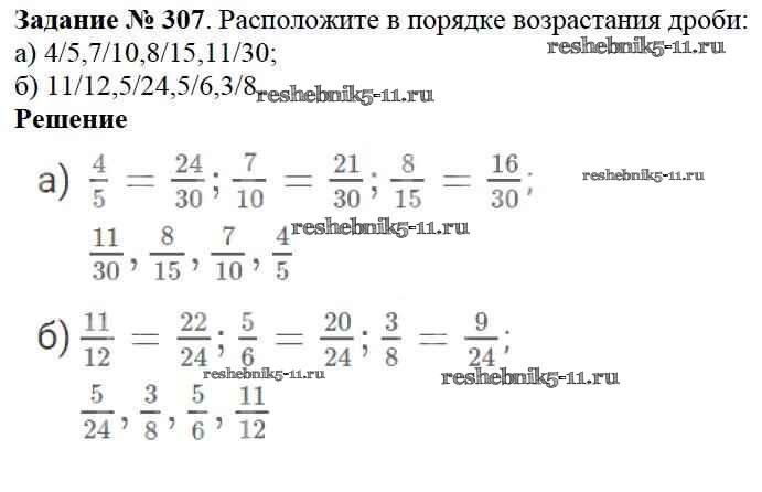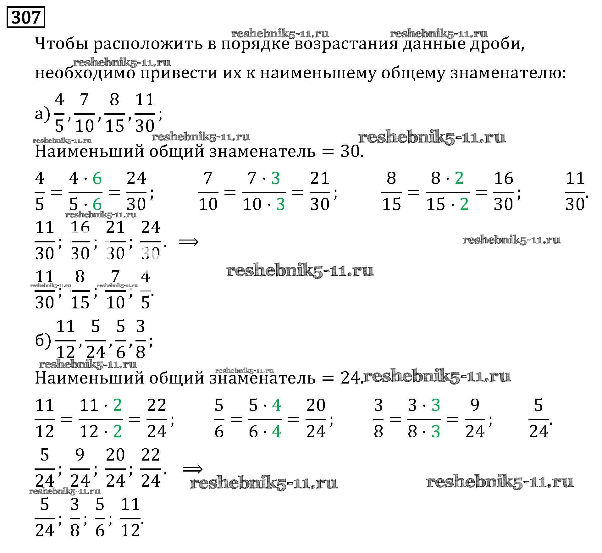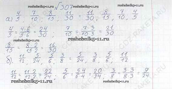 Готовая домашняя работа с ответами по Математике за 6 класс Виленкин, Жохов, Чесноков, Шварцбурд Учебник Мнемозина 2014 ФГОС - §2. Сложение и вычитание дробей с разными знаменателями 307