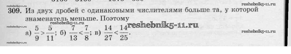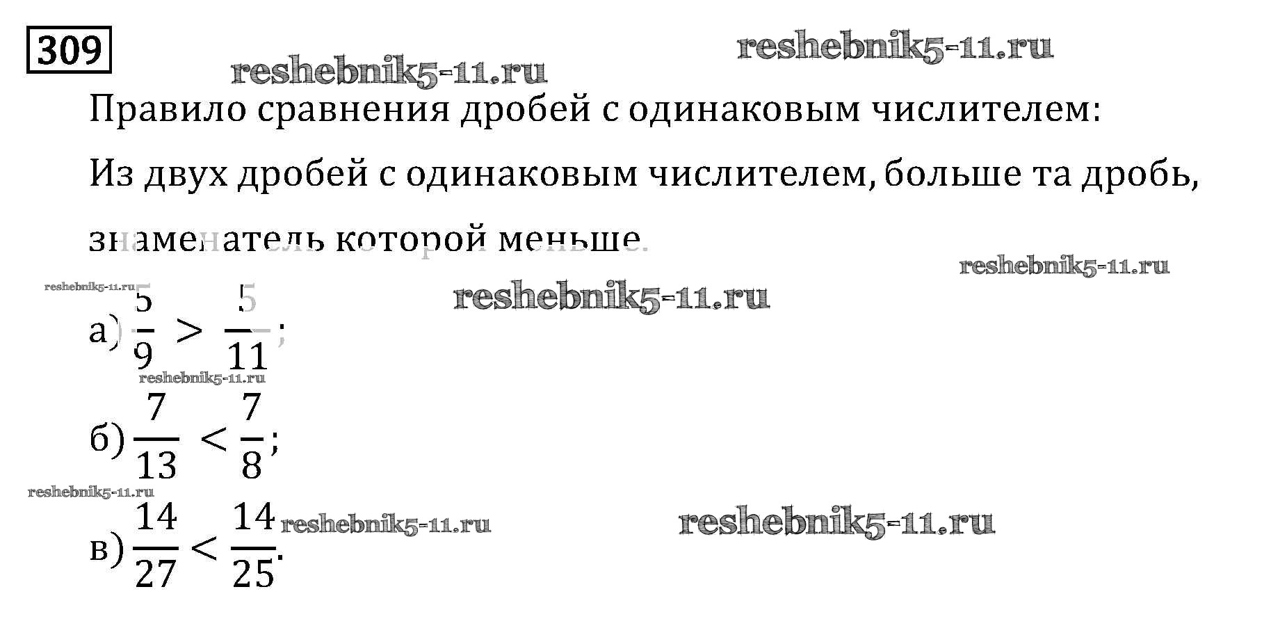Готовая домашняя работа с ответами по Математике за 6 класс Виленкин, Жохов, Чесноков, Шварцбурд Учебник Мнемозина 2014 ФГОС - §2. Сложение и вычитание дробей с разными знаменателями 309