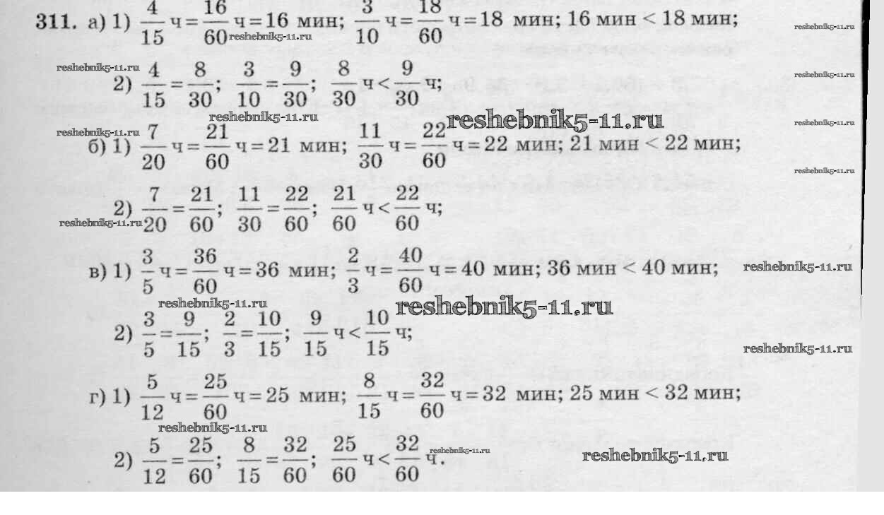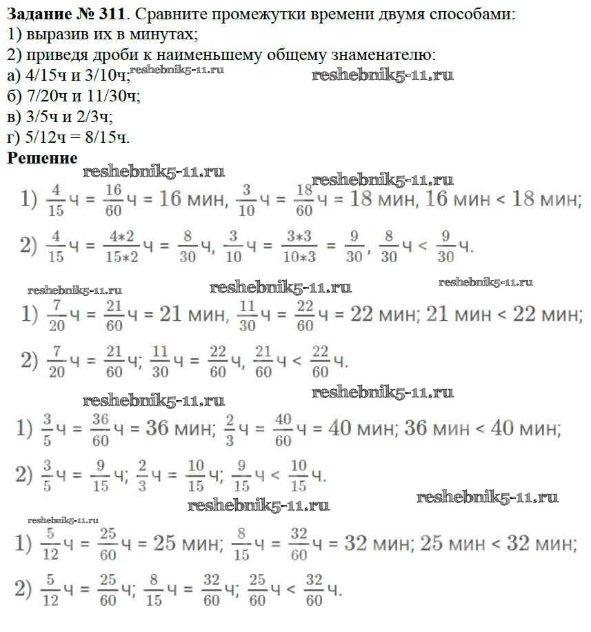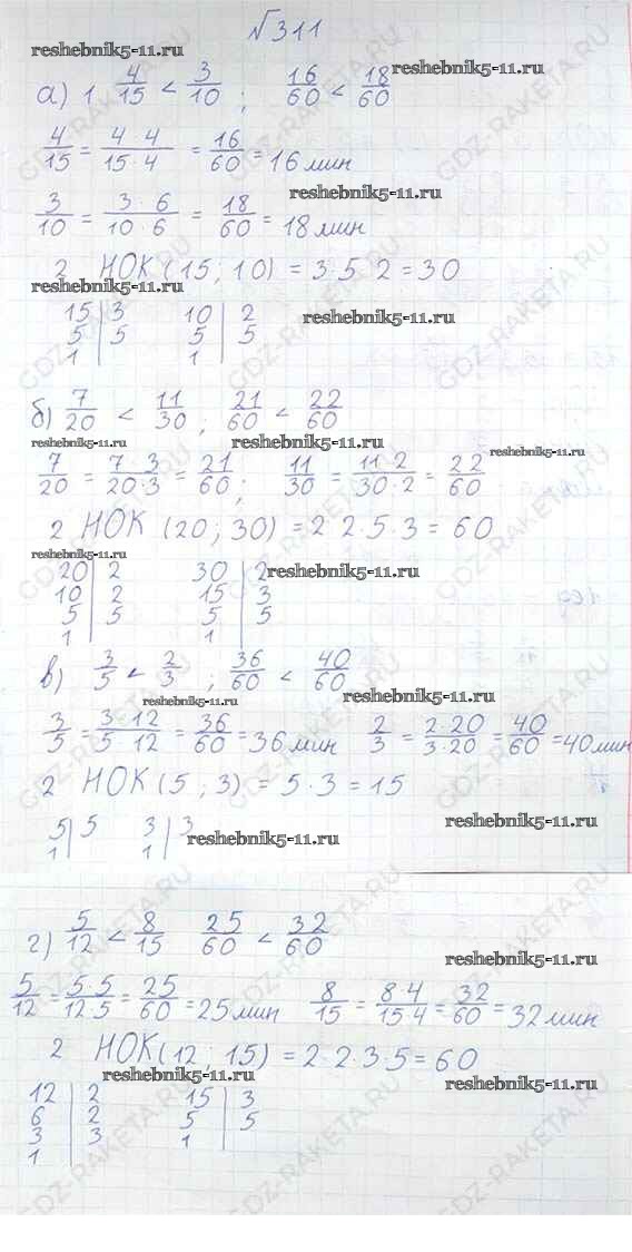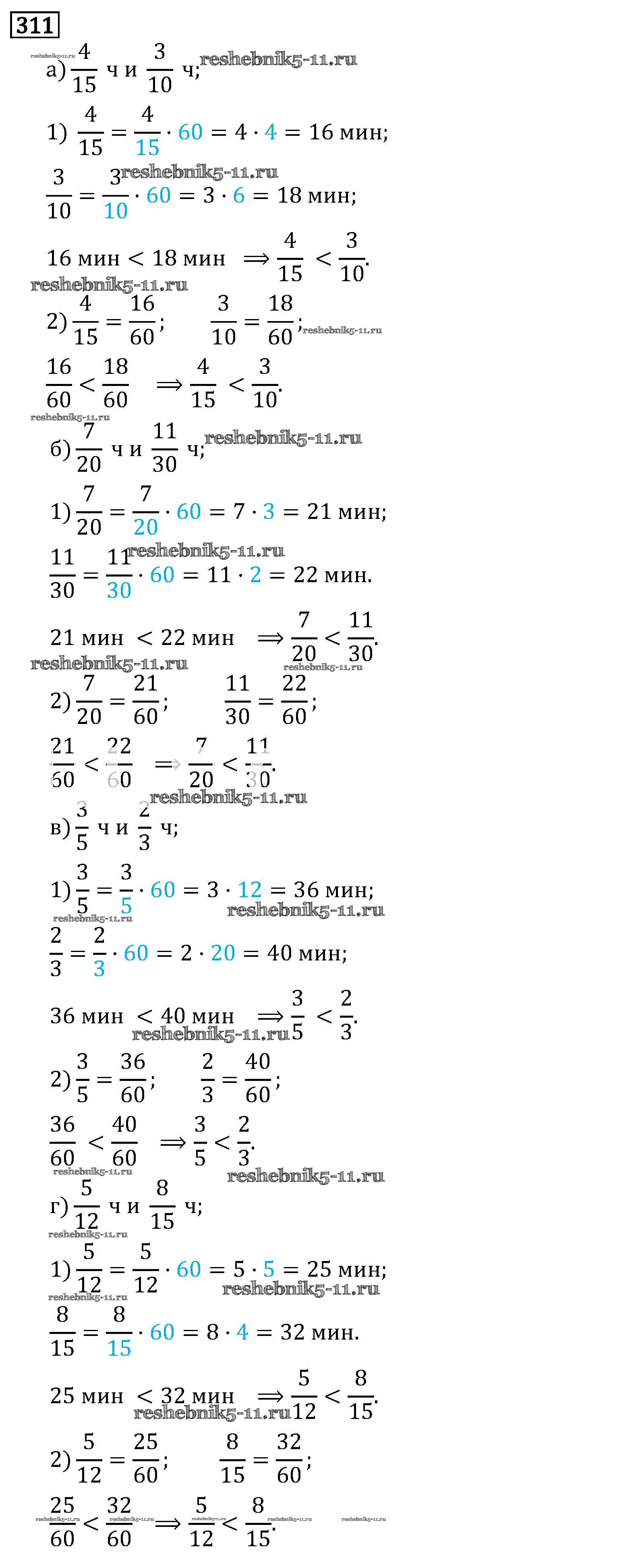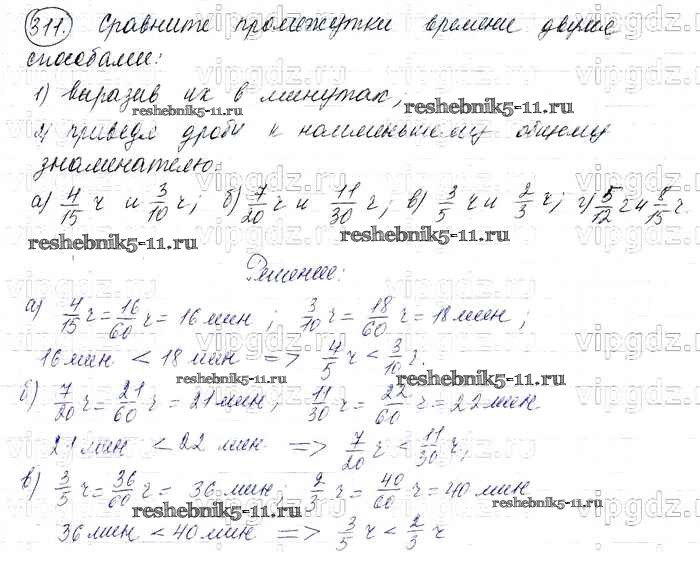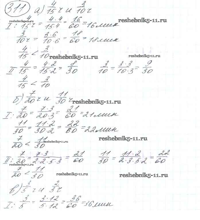 Готовая домашняя работа с ответами по Математике за 6 класс Виленкин, Жохов, Чесноков, Шварцбурд Учебник Мнемозина 2014 ФГОС - §2. Сложение и вычитание дробей с разными знаменателями 311