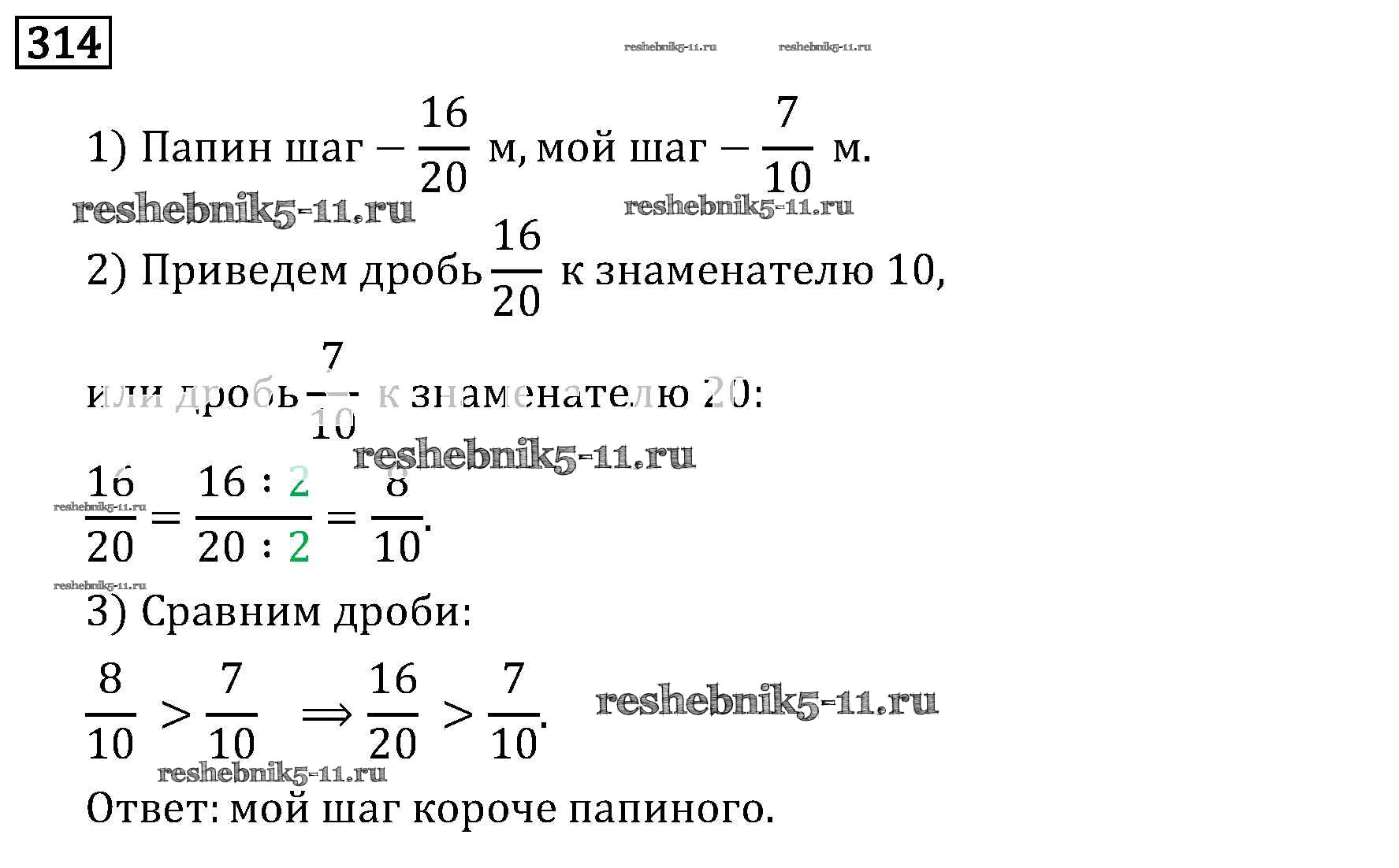Готовая домашняя работа с ответами по Математике за 6 класс Виленкин, Жохов, Чесноков, Шварцбурд Учебник Мнемозина 2014 ФГОС - §2. Сложение и вычитание дробей с разными знаменателями 314
