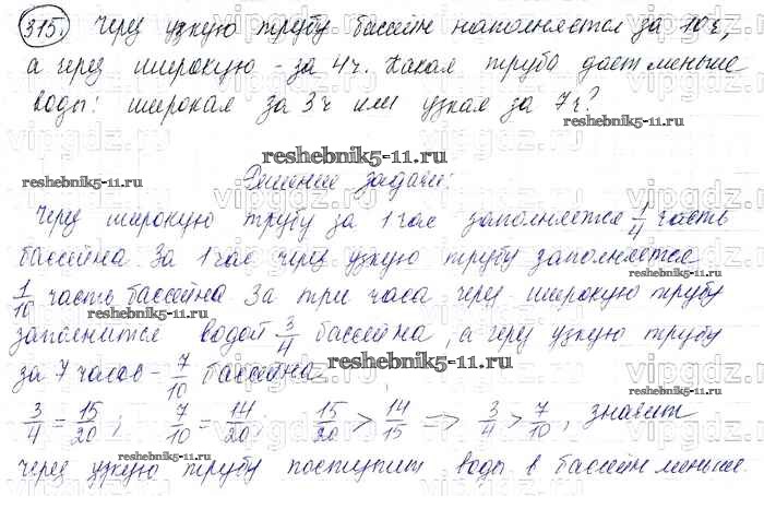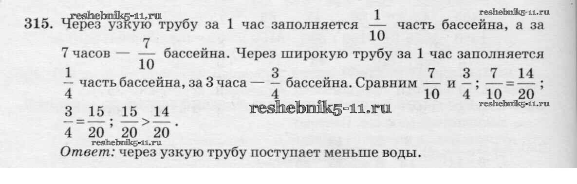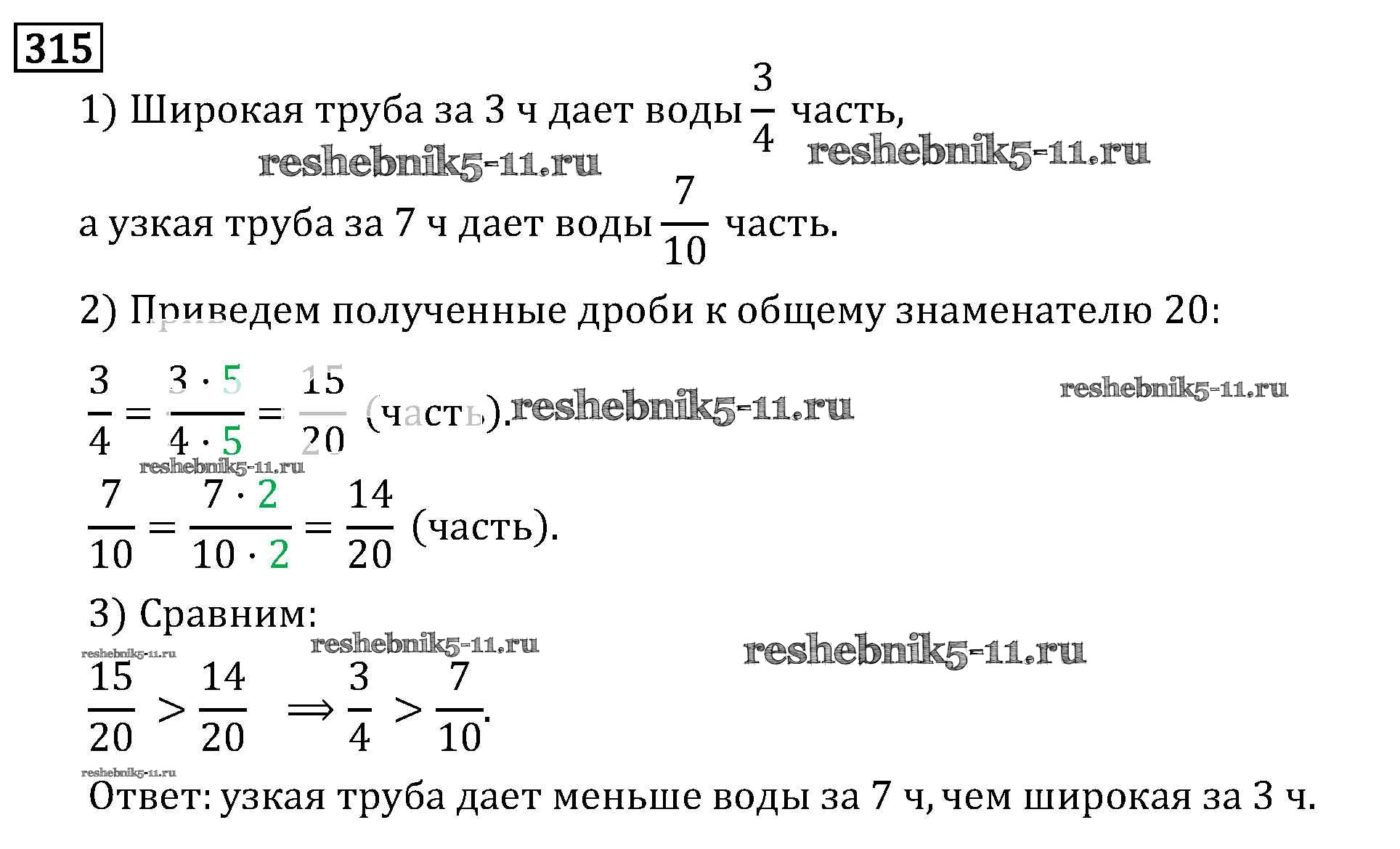 Готовая домашняя работа с ответами по Математике за 6 класс Виленкин, Жохов, Чесноков, Шварцбурд Учебник Мнемозина 2014 ФГОС - §2. Сложение и вычитание дробей с разными знаменателями 315