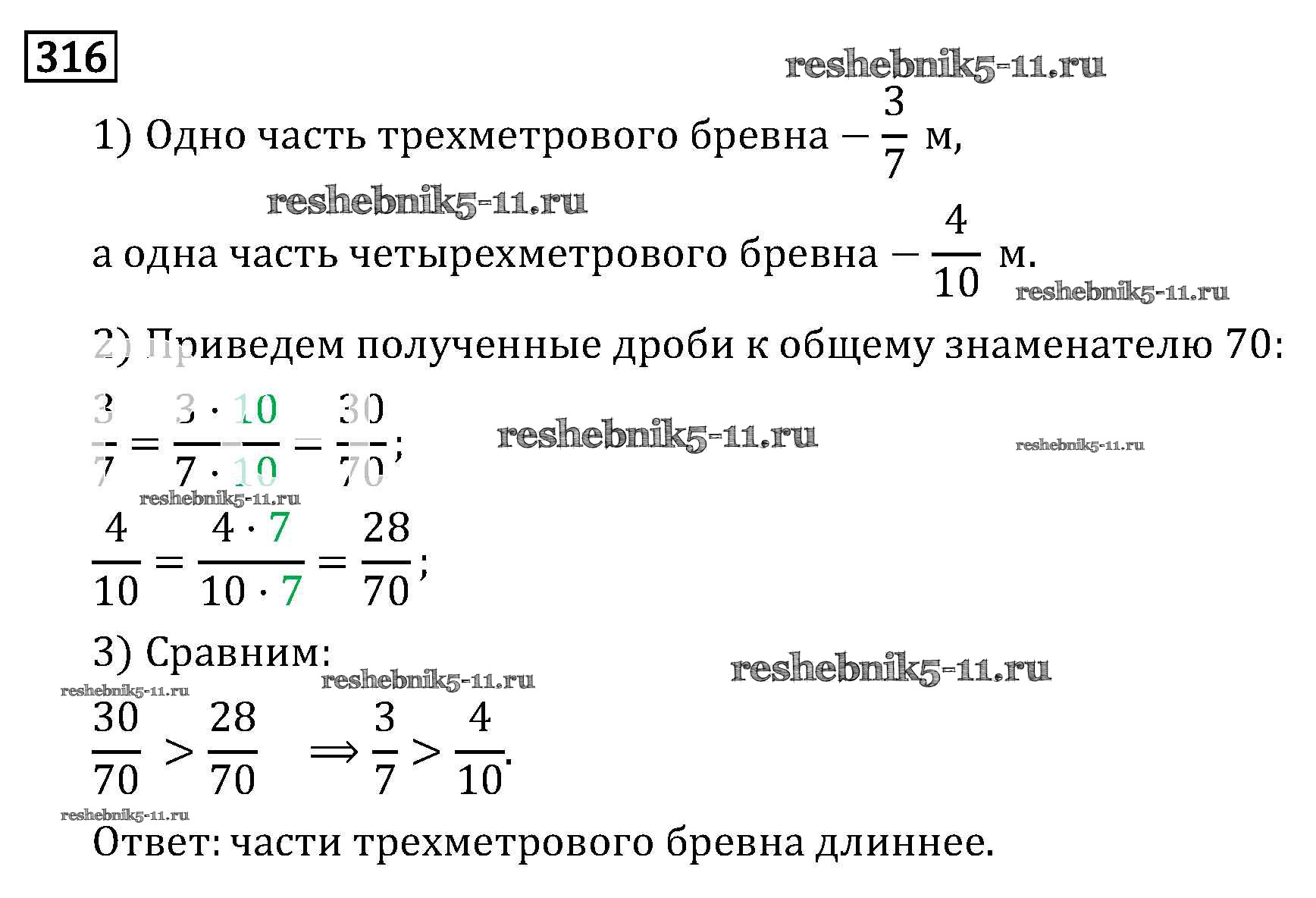 Готовая домашняя работа с ответами по Математике за 6 класс Виленкин, Жохов, Чесноков, Шварцбурд Учебник Мнемозина 2014 ФГОС - §2. Сложение и вычитание дробей с разными знаменателями 316