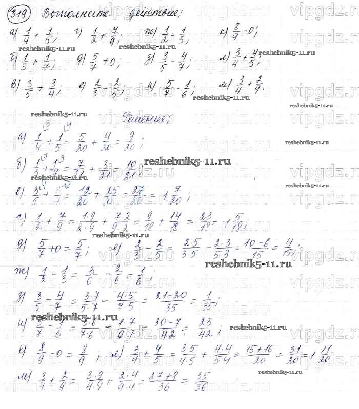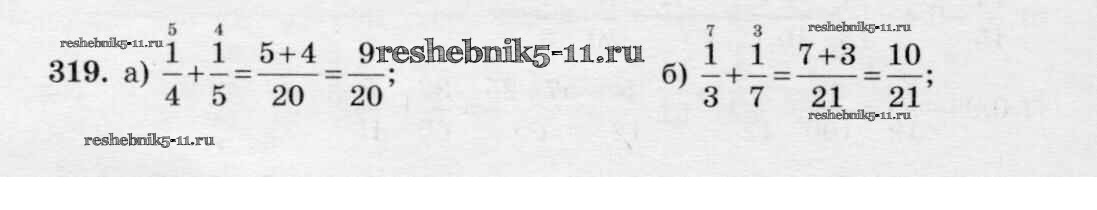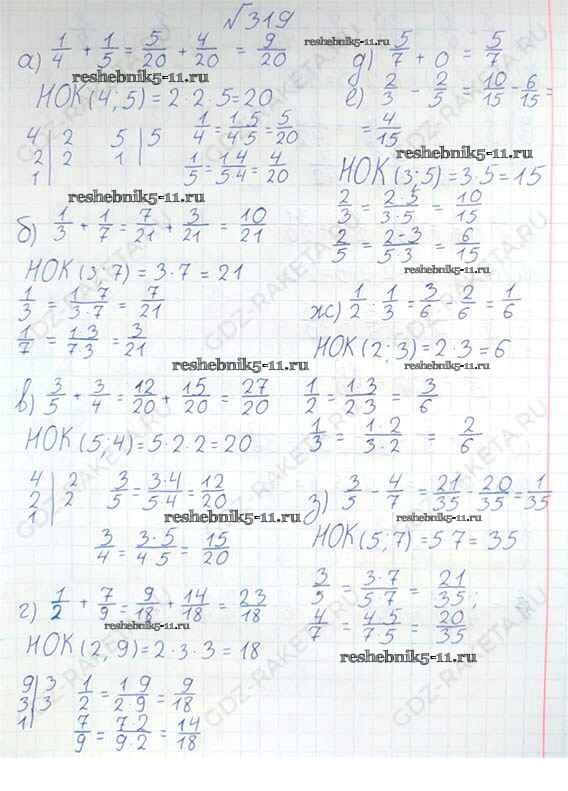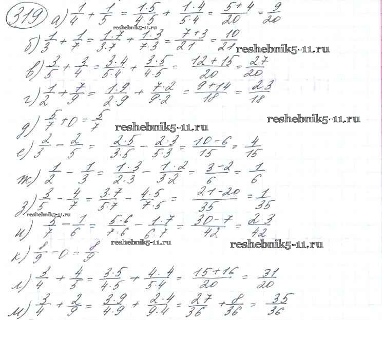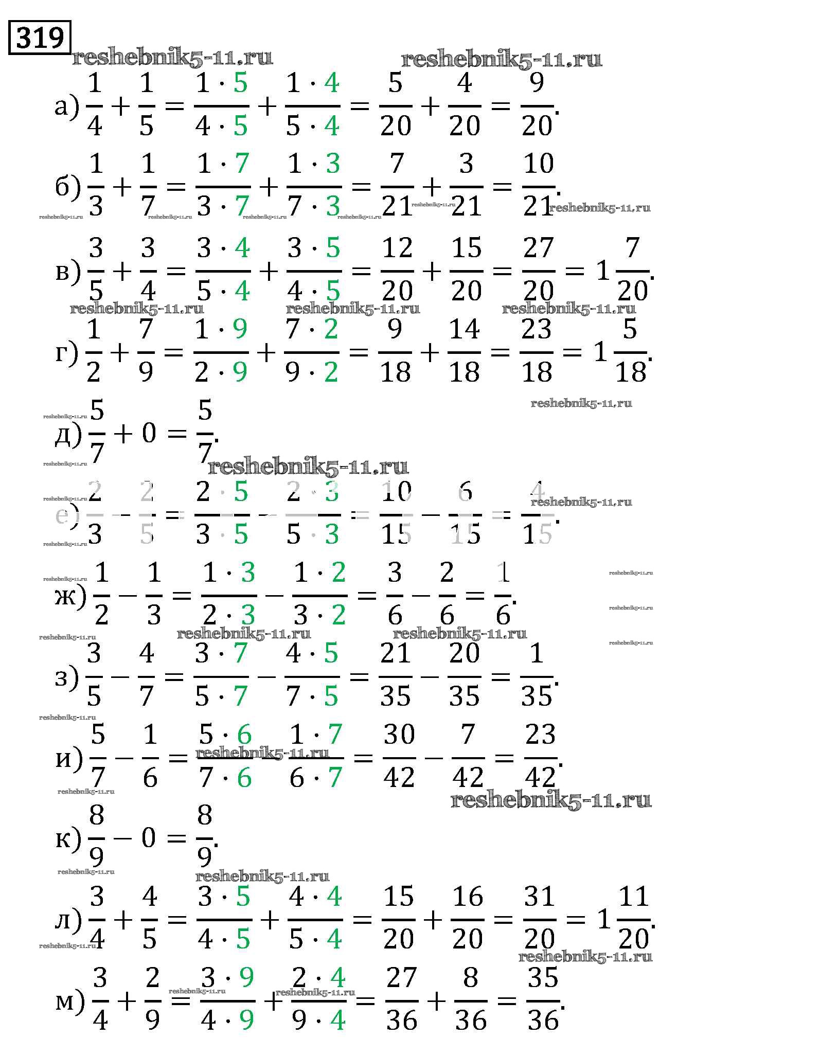 Готовая домашняя работа с ответами по Математике за 6 класс Виленкин, Жохов, Чесноков, Шварцбурд Учебник Мнемозина 2014 ФГОС - §2. Сложение и вычитание дробей с разными знаменателями 319