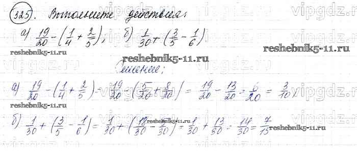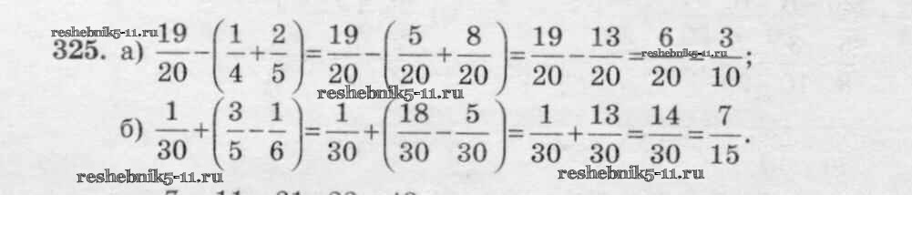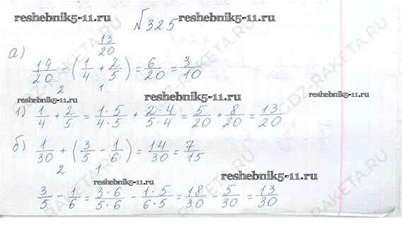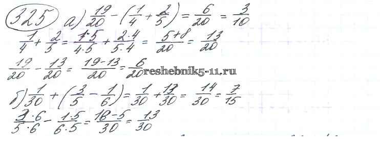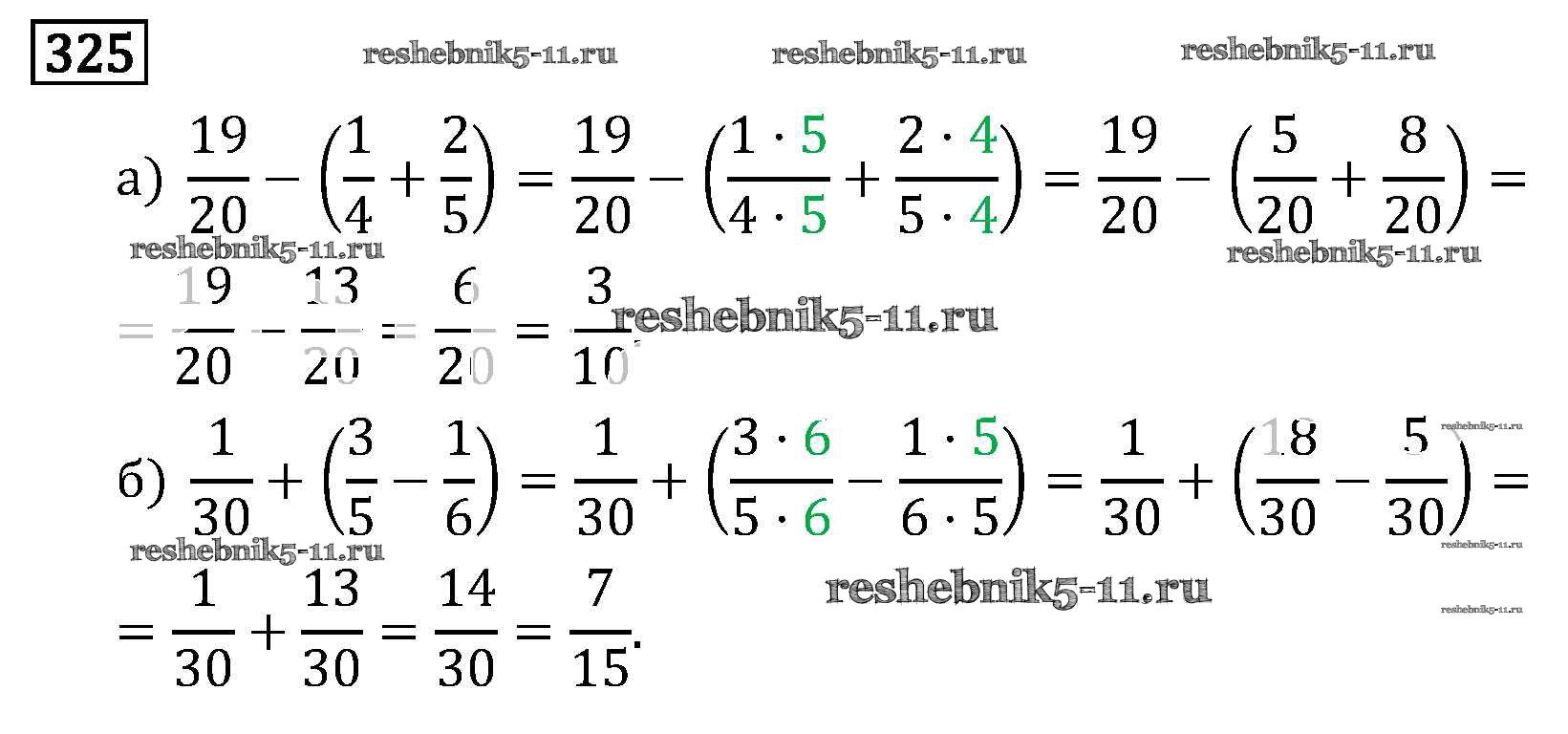 Готовая домашняя работа с ответами по Математике за 6 класс Виленкин, Жохов, Чесноков, Шварцбурд Учебник Мнемозина 2014 ФГОС - §2. Сложение и вычитание дробей с разными знаменателями 325