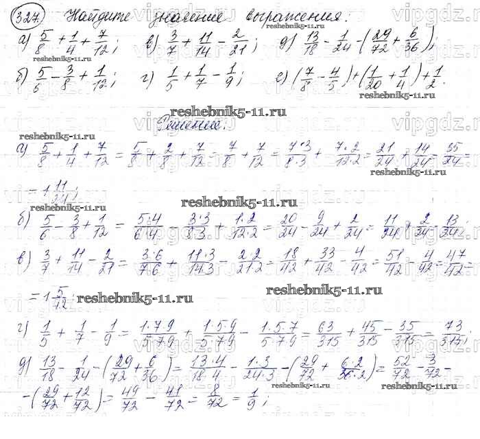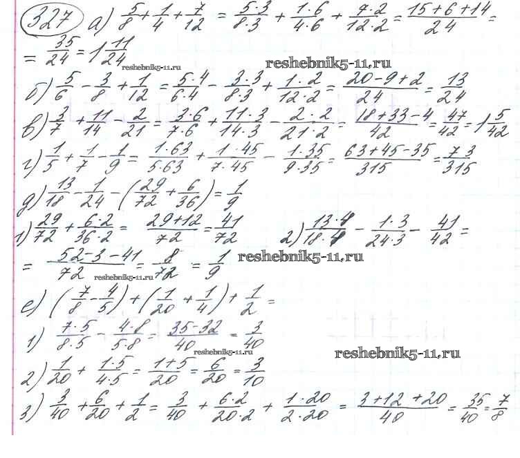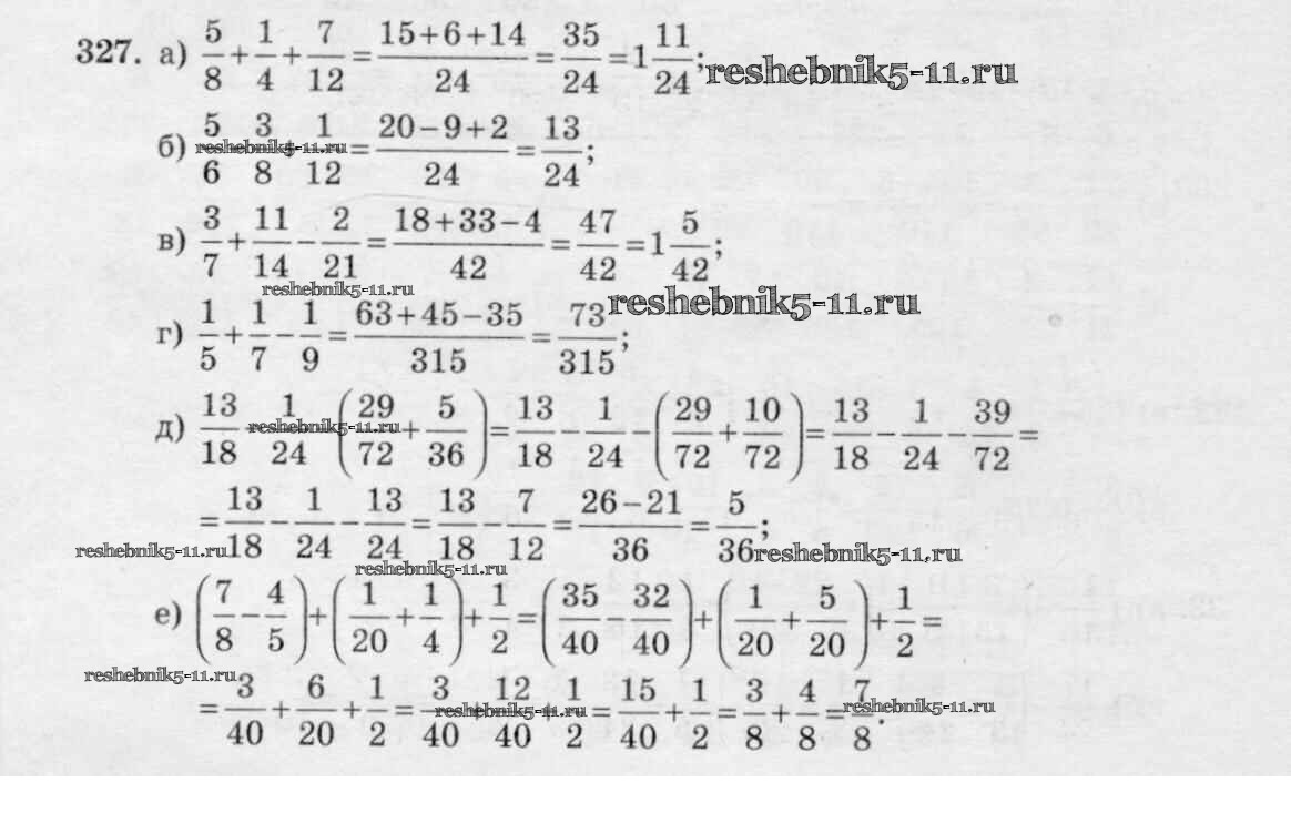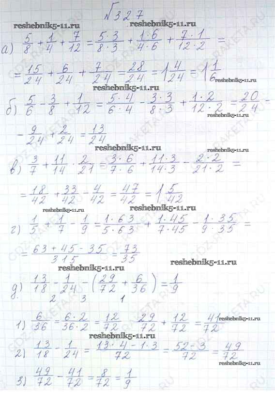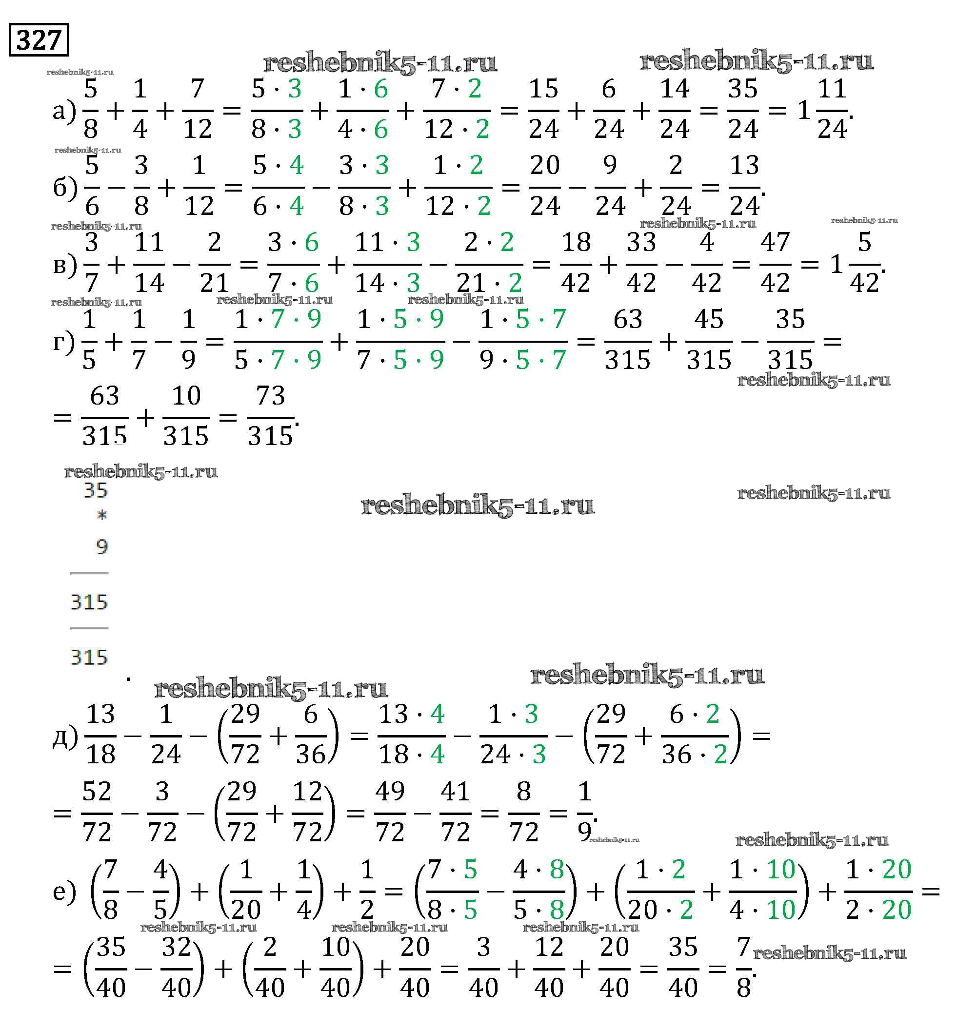 Готовая домашняя работа с ответами по Математике за 6 класс Виленкин, Жохов, Чесноков, Шварцбурд Учебник Мнемозина 2014 ФГОС - §2. Сложение и вычитание дробей с разными знаменателями 327