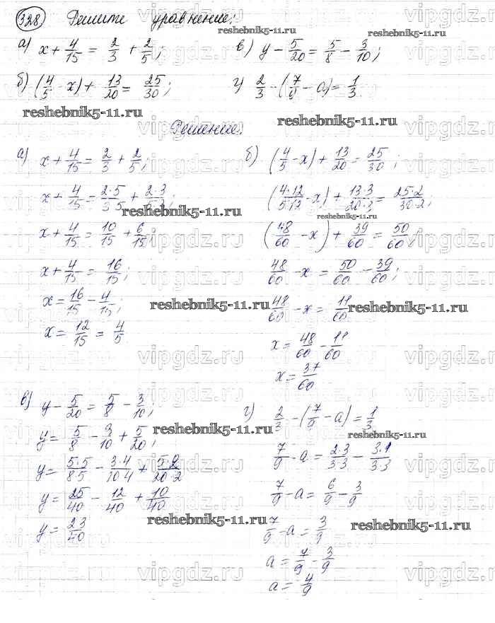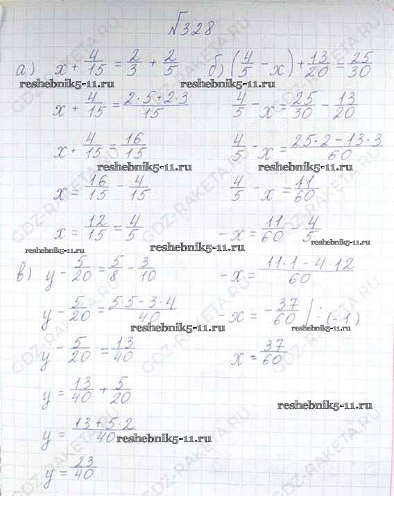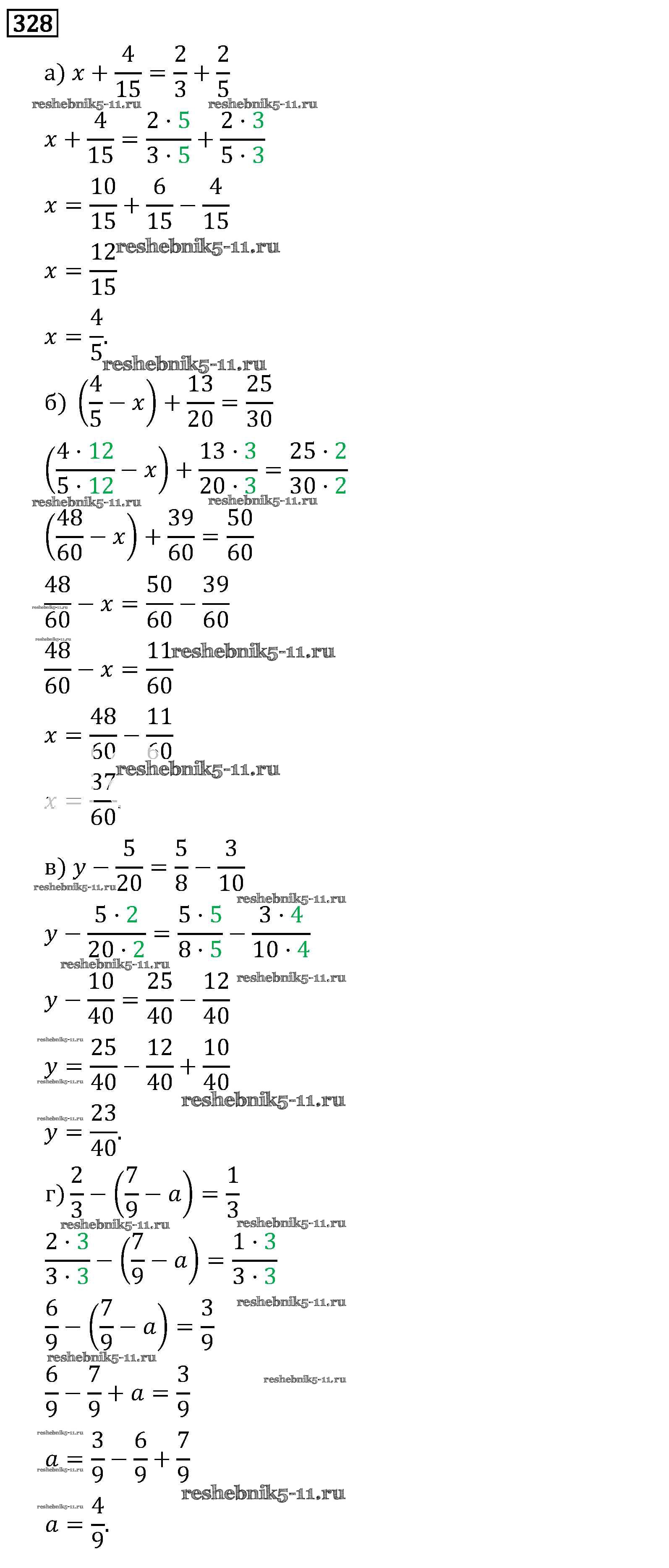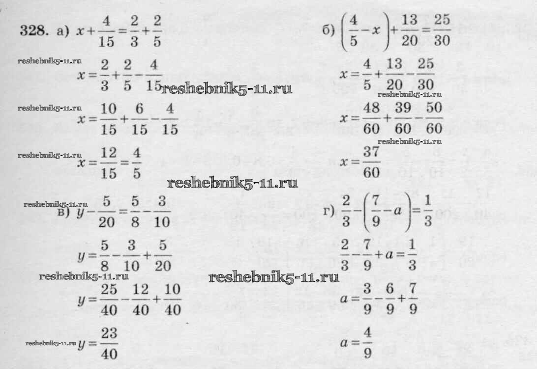 Готовая домашняя работа с ответами по Математике за 6 класс Виленкин, Жохов, Чесноков, Шварцбурд Учебник Мнемозина 2014 ФГОС - §2. Сложение и вычитание дробей с разными знаменателями 328
