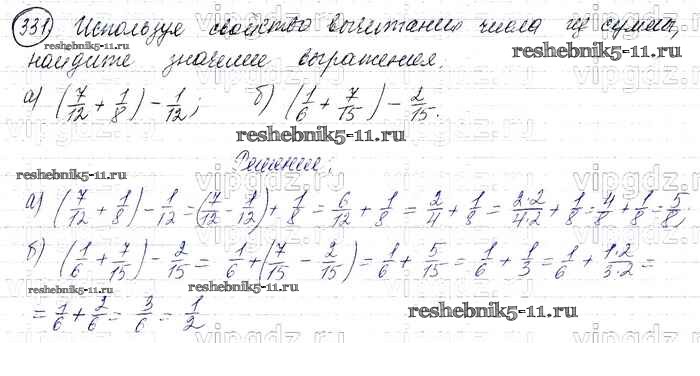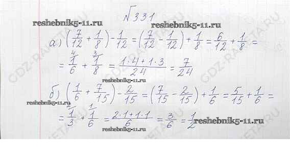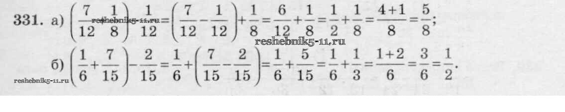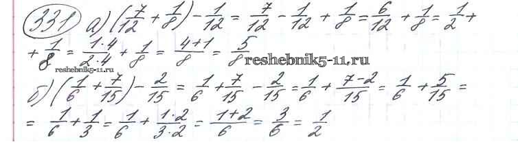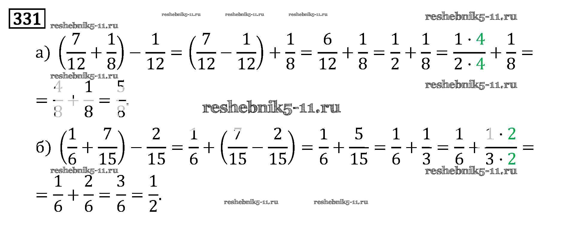 Готовая домашняя работа с ответами по Математике за 6 класс Виленкин, Жохов, Чесноков, Шварцбурд Учебник Мнемозина 2014 ФГОС - §2. Сложение и вычитание дробей с разными знаменателями 331