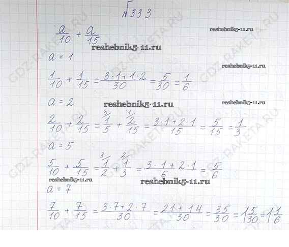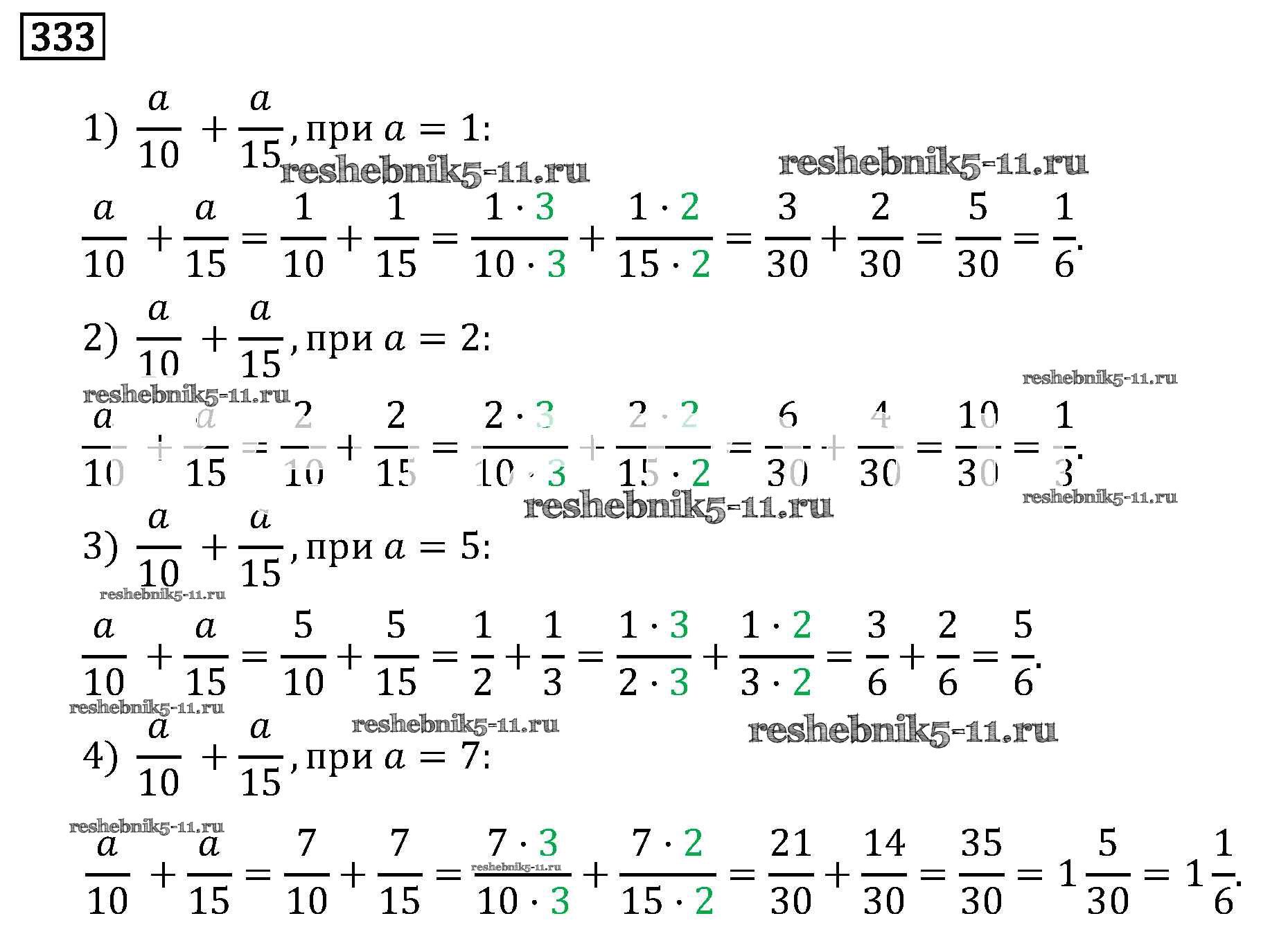Готовая домашняя работа с ответами по Математике за 6 класс Виленкин, Жохов, Чесноков, Шварцбурд Учебник Мнемозина 2014 ФГОС - §2. Сложение и вычитание дробей с разными знаменателями 333