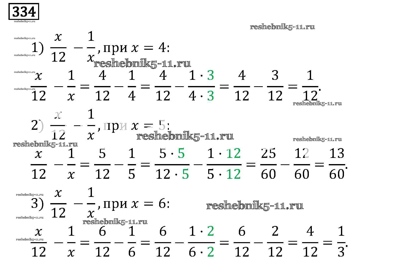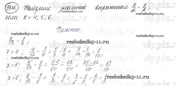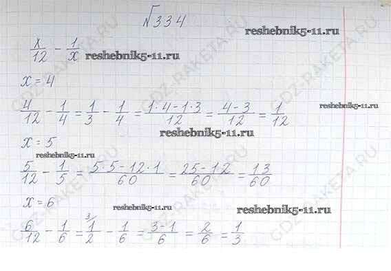 Готовая домашняя работа с ответами по Математике за 6 класс Виленкин, Жохов, Чесноков, Шварцбурд Учебник Мнемозина 2014 ФГОС - §2. Сложение и вычитание дробей с разными знаменателями 334