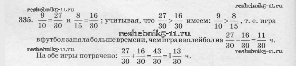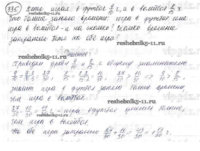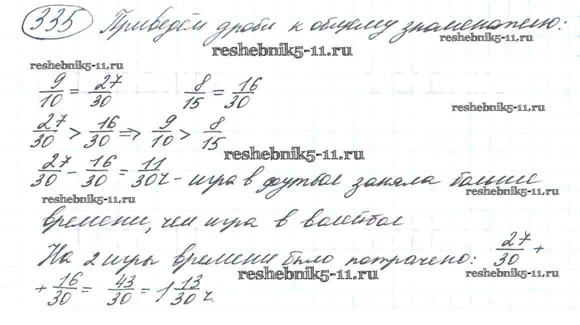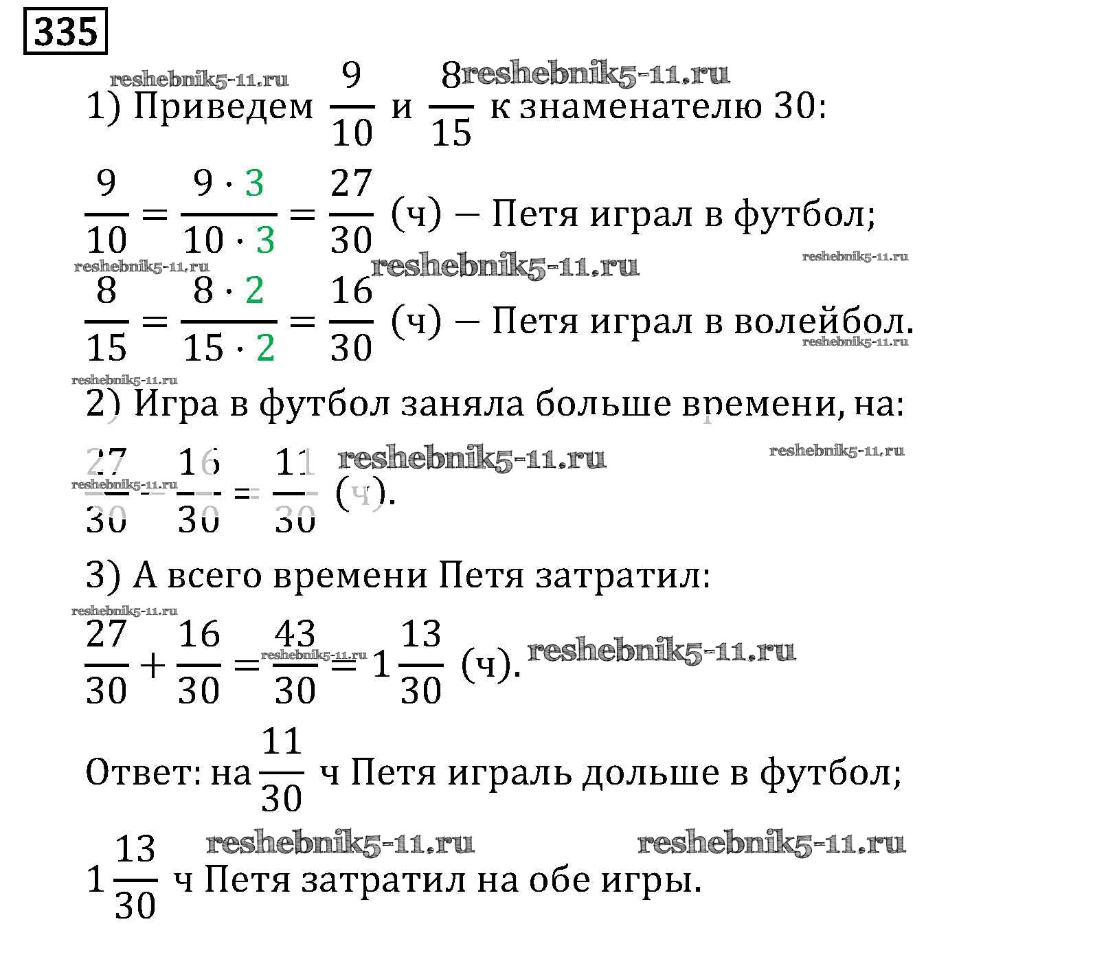 Готовая домашняя работа с ответами по Математике за 6 класс Виленкин, Жохов, Чесноков, Шварцбурд Учебник Мнемозина 2014 ФГОС - §2. Сложение и вычитание дробей с разными знаменателями 335