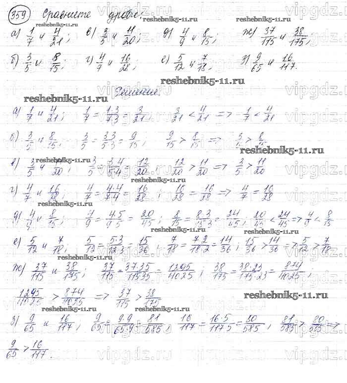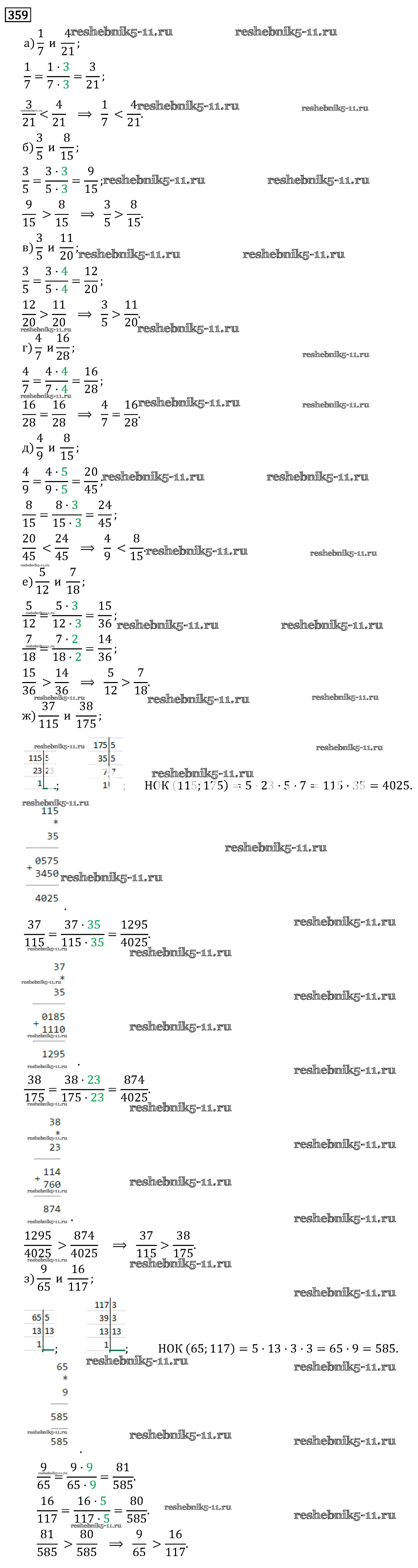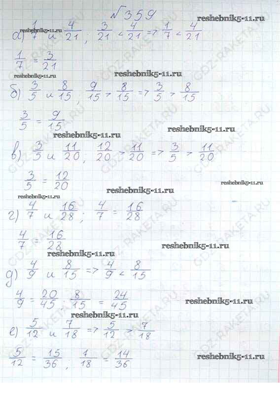 Готовая домашняя работа с ответами по Математике за 6 класс Виленкин, Жохов, Чесноков, Шварцбурд Учебник Мнемозина 2014 ФГОС - §2. Сложение и вычитание дробей с разными знаменателями 359